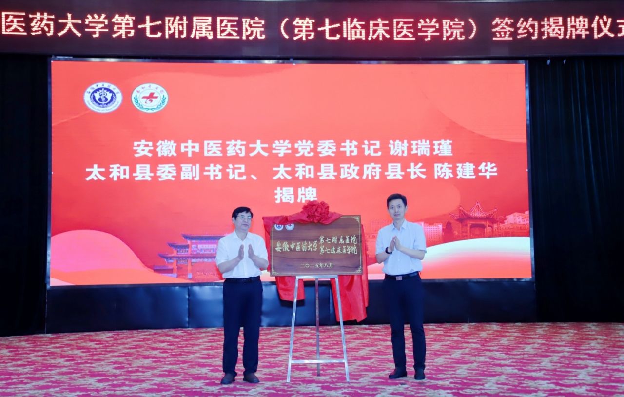8月8日上午,安徽中医药大学、太和县人民政府共建安徽中医药大学第七附属医院(第七临床医学院)签约揭牌仪式在太和县中医院举行。校党委书记谢瑞瑾出席,太和县县委副书记、县长陈建华致辞,校党委常委、副校长...