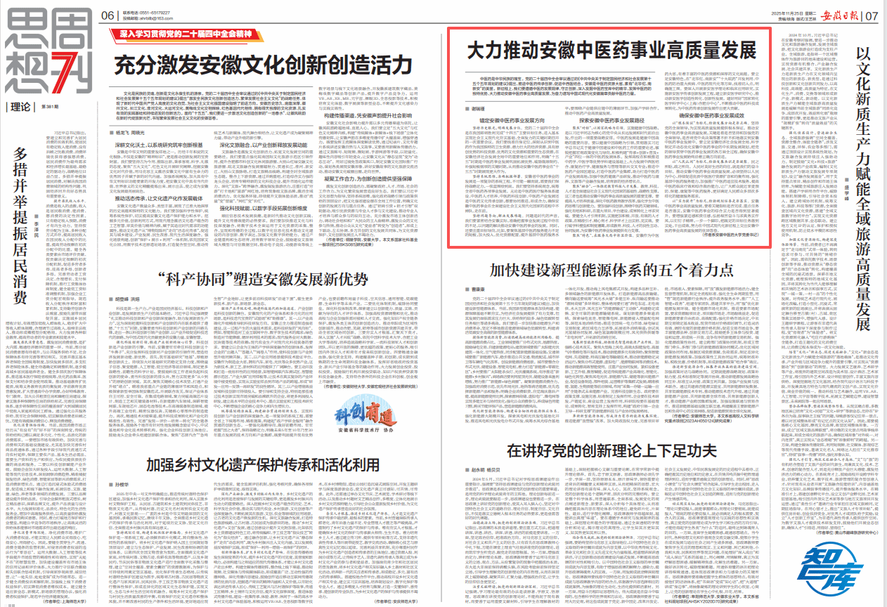 11月25日,《安徽日报》刊发校党委书记谢瑞瑾学习贯彻党的二十届四中全会精神的理论文章《大力推动安徽中医药事业高质量发展》。全文如下:大力推动安徽中医药事业高质量发展中医药是中华民族的瑰宝。党的二十届...
