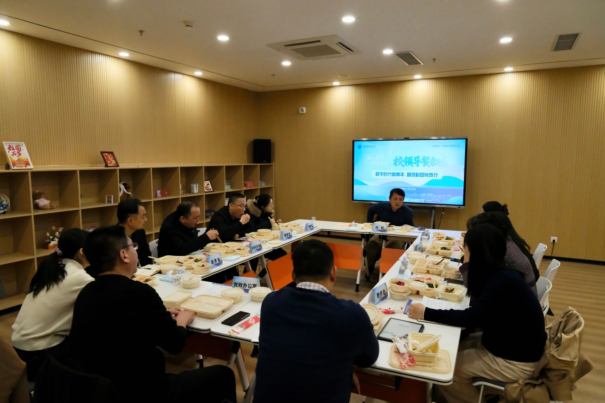 11月25日中午,校党委副书记、校长许钒走进大学生“一站式”岐黄社区,出席学校第二期校领导餐叙会,围绕“数字时代新青年,智慧校园伴我行”主题,与5名师生代表共进午餐,深入交流。餐叙期间,许钒与师生亲切交...