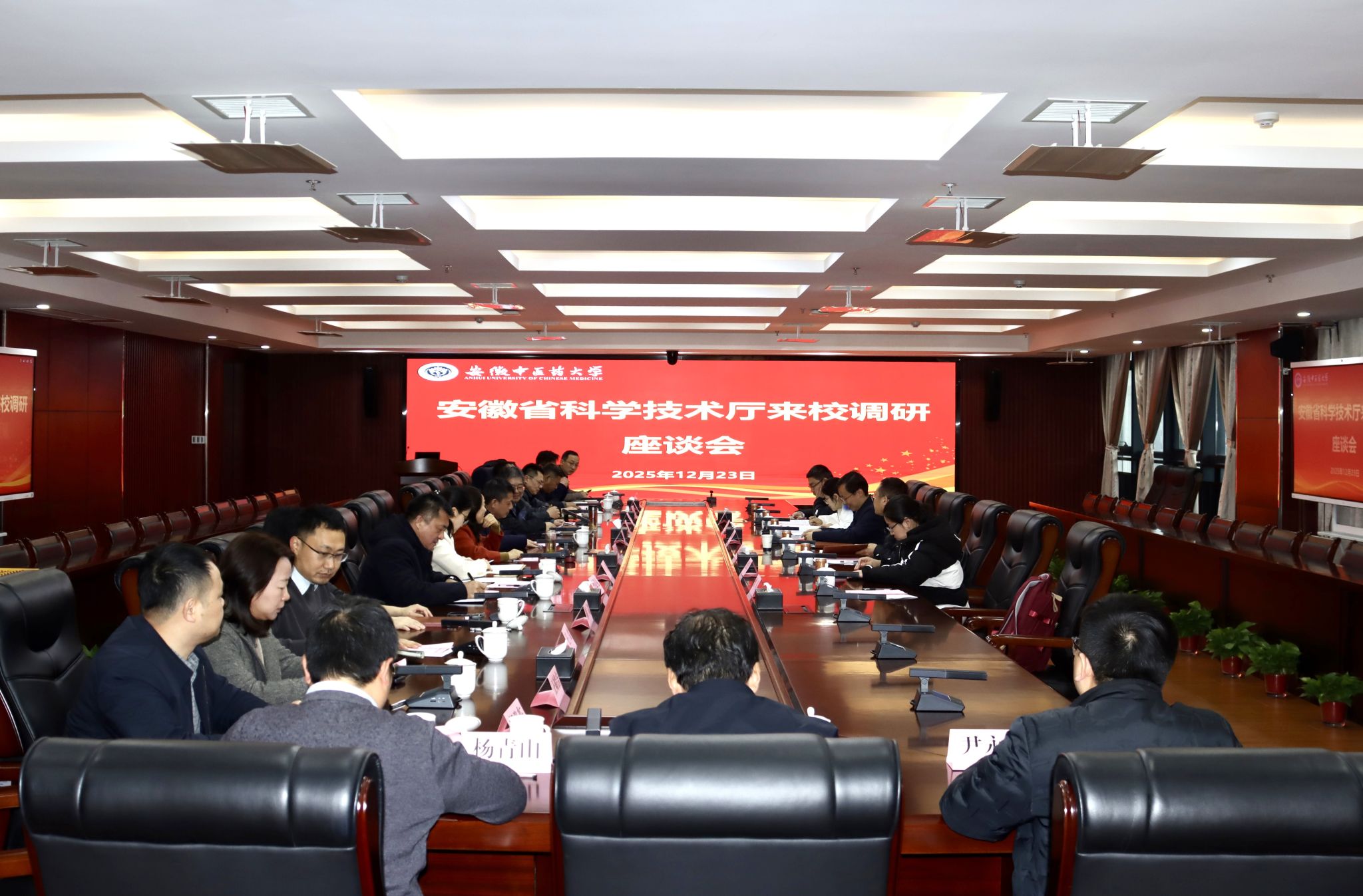 12月23日,安徽省科学技术厅党组成员、副厅长谭海斌率队莅临我校调研指导,聚焦统筹推进学校“教育、科技、人才”一体化发展召开座谈会。校党委副书记、校长许钒,党委常委、副校长魏骅、桂双英出席会议,座谈会...