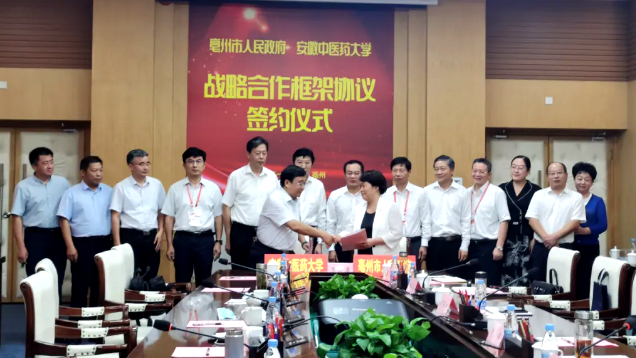9月9日下午,学校与亳州市人民政府战略合作框架协议,签约仪式在亳州市行政会议中心举行。学校校长彭代银出席仪式并讲话。
