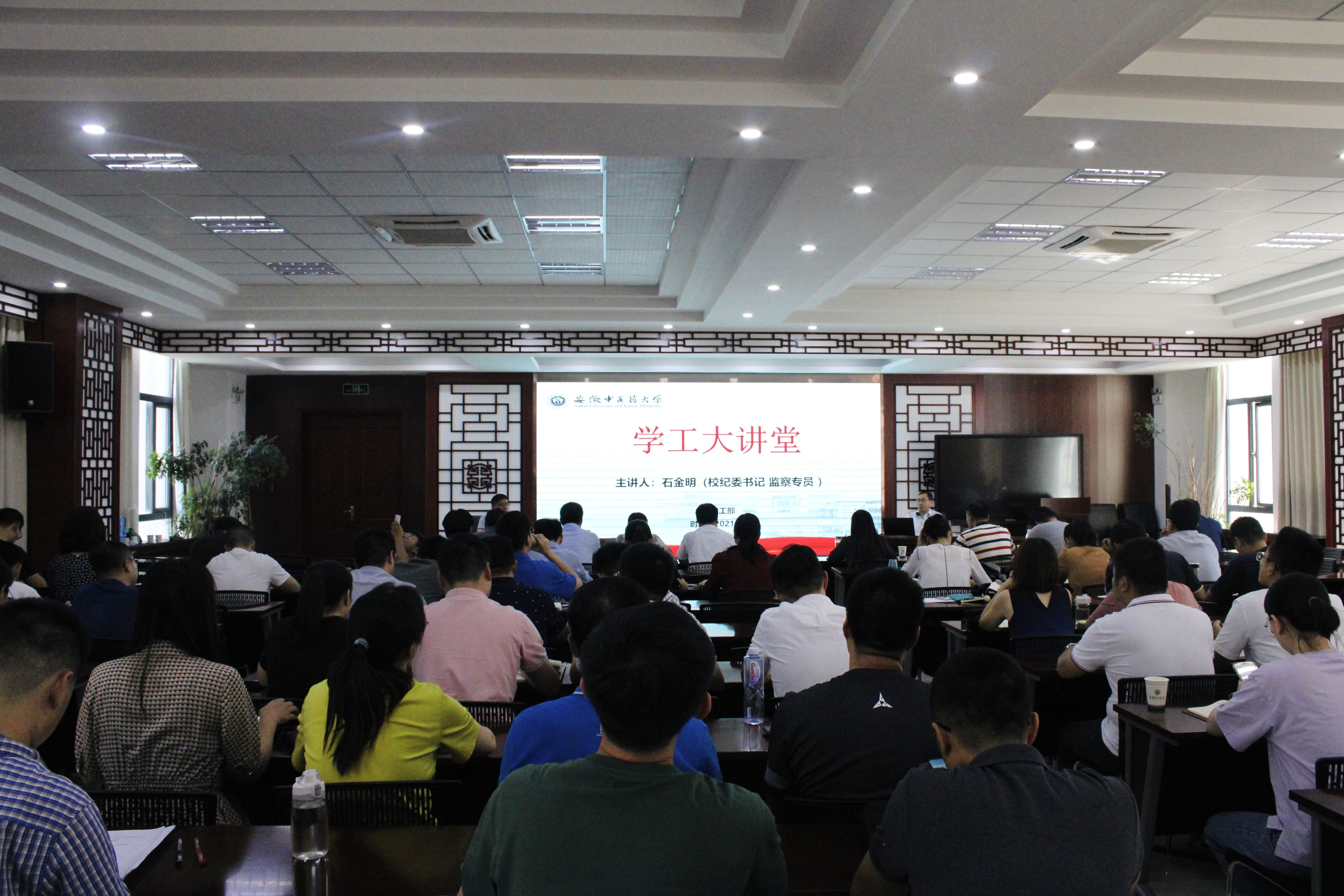为进一步推动党史学习教育,加强学工队伍建设,9月23日下午,学校党委学工部举办学工大讲堂活动,邀请校纪委书记、监察专员石金明作题为《把纪律挺在前面 提高拒腐防变能力》的专题讲座。讲座由学工部部长张军主持,学生处、校团委全体工作人员,各学院分管学生工作领导以及全体专兼职辅导员、班主任参加学习。