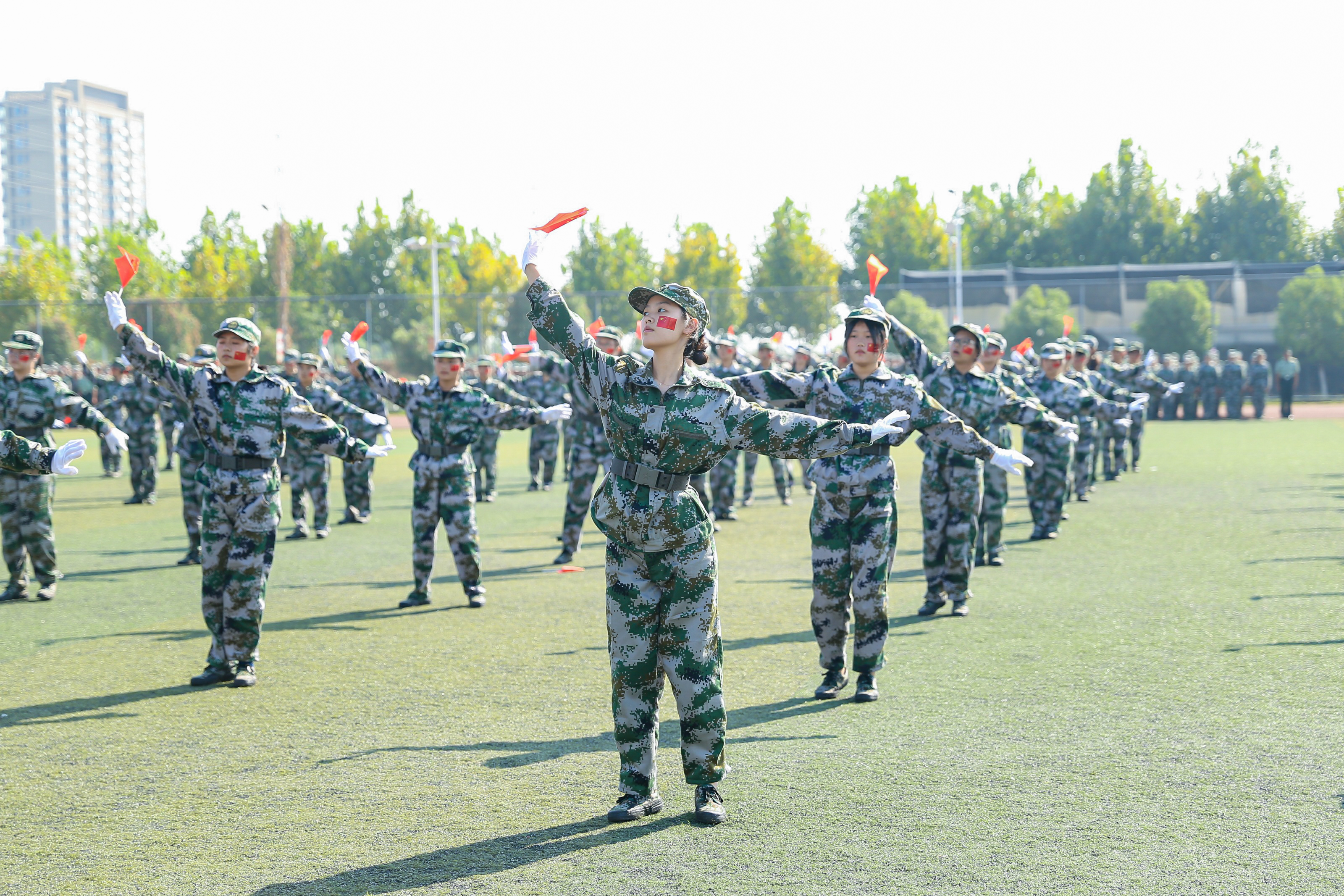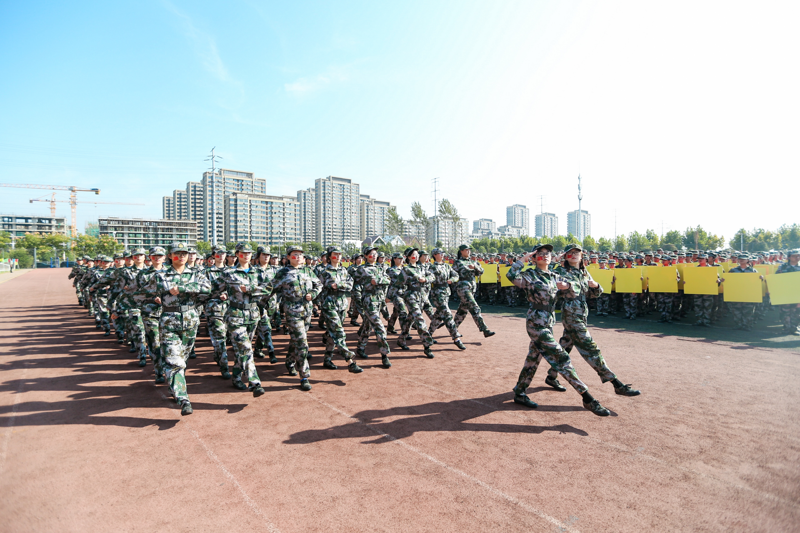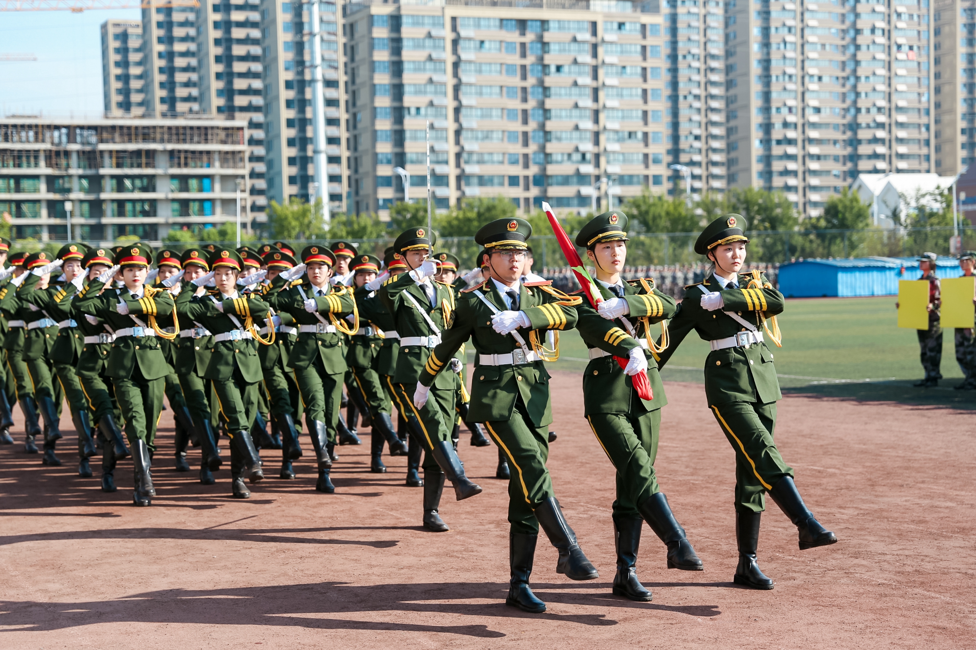 在国旗护卫队的庄严护卫下,鲜艳的五星红旗冉冉升起,全场师生齐声同唱《义勇军进行曲》,大会正式拉开帷幕。身着迷彩服的2021级新生正步进入会场,整齐的步伐、宏亮的口号、严整的军姿,展现了新生们饱满的精神状态。在秋日阳光映衬下的他们更显朝气蓬勃,意气风发,赢得了在场师生的阵阵掌声,得到了学校领导及军训教官的一致认可。
