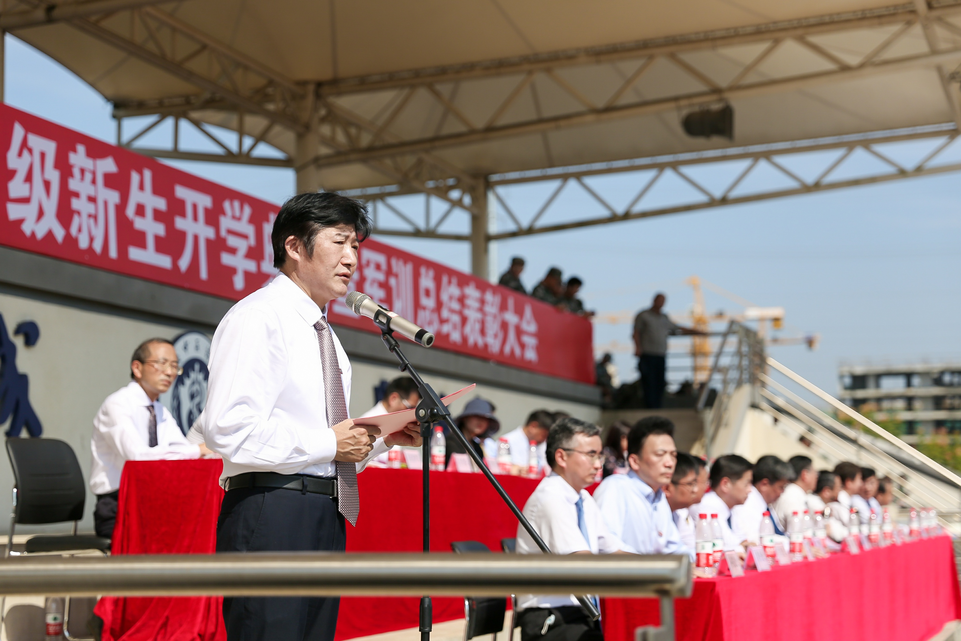 学校领导彭代银、张永群、魏骅、石金明、许钒及承训部队领导出席大会现场,学校各职能部门、各学院主要负责人及参训部队教官、全体新生参加大会。大会由校党委副书记张永群主持。