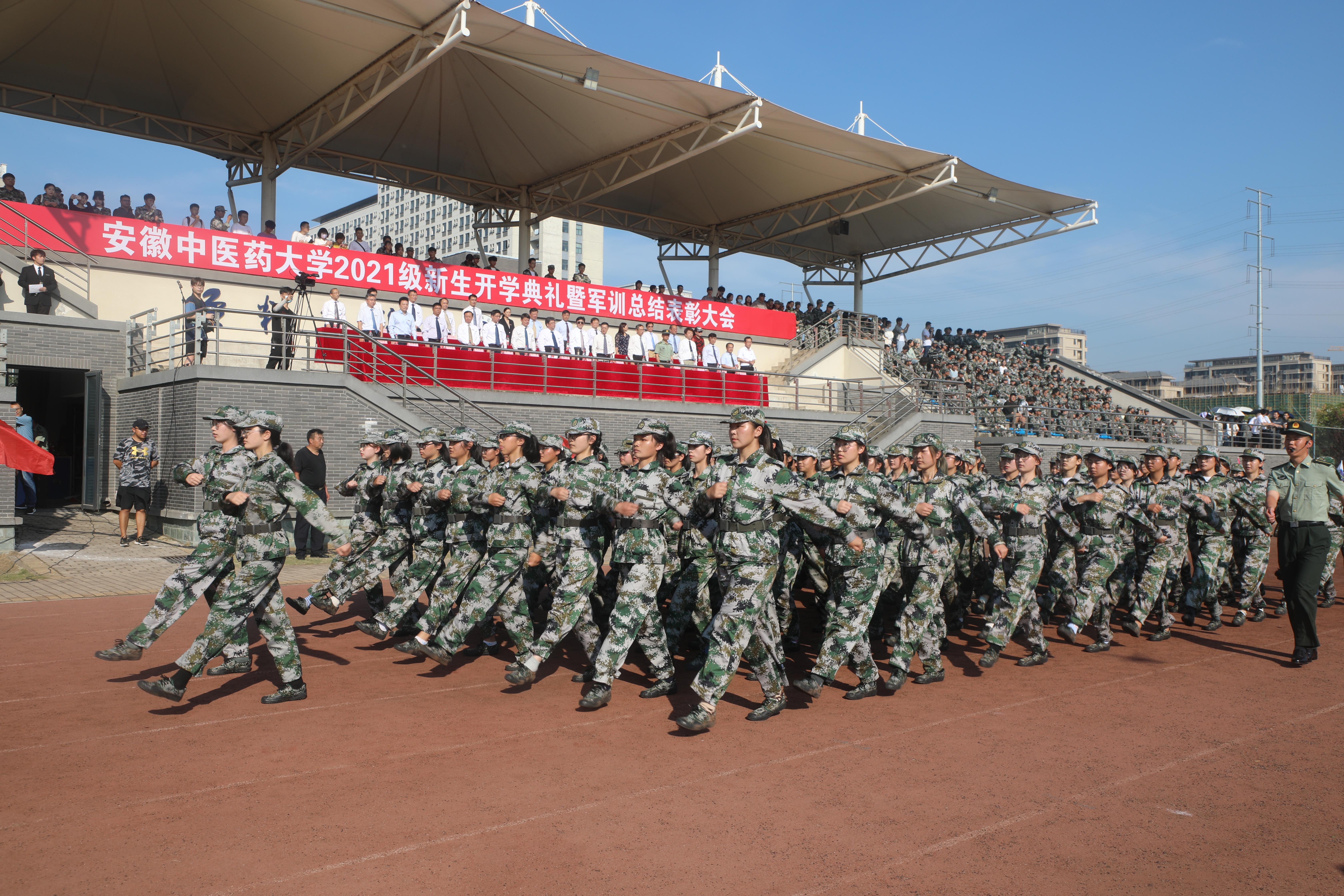 飒爽英姿舞动绿茵,杏林新锐声震少荃。9月26日上午,安徽中医药大学2021级新生开学典礼暨军训总结表彰大会在学校少荃湖校区田径运动场隆重举行。历经10余天的艰苦训练,3590名参训学员经过军训的洗礼历练,身着戎装,军容整齐,以昂扬的精神面貌在操场依次列队,接受主席台检阅,汇报训练成果,为自己的大学生活交上一份自信满意的入学答卷。