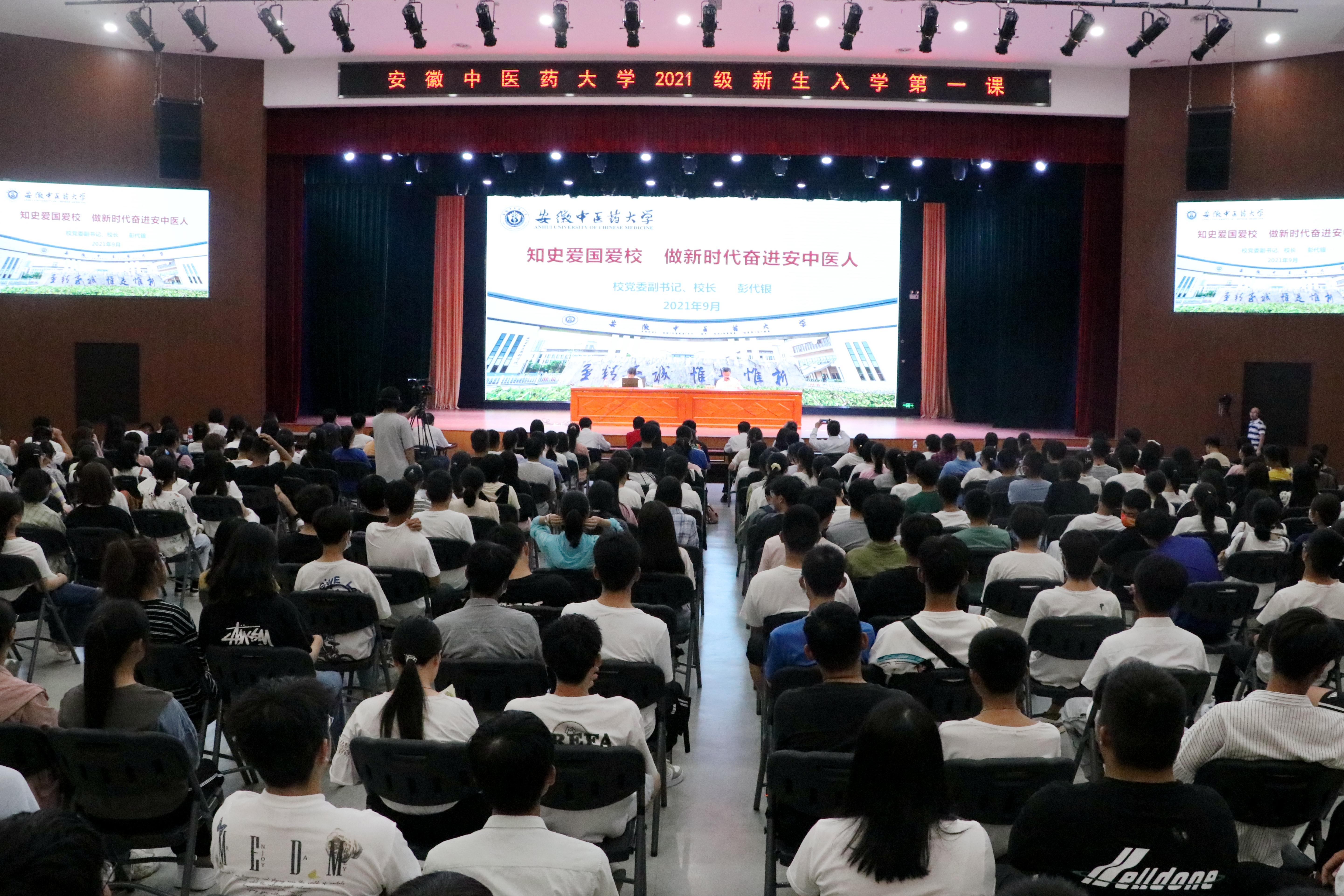 9月26日,学校宣传部、学工部联合开展校长“入学第一课”,校长彭代银以《知史爱国爱校 做新时代奋进安中医人》为题讲授,帮助新同学扣好大学生涯“第一粒扣子”。