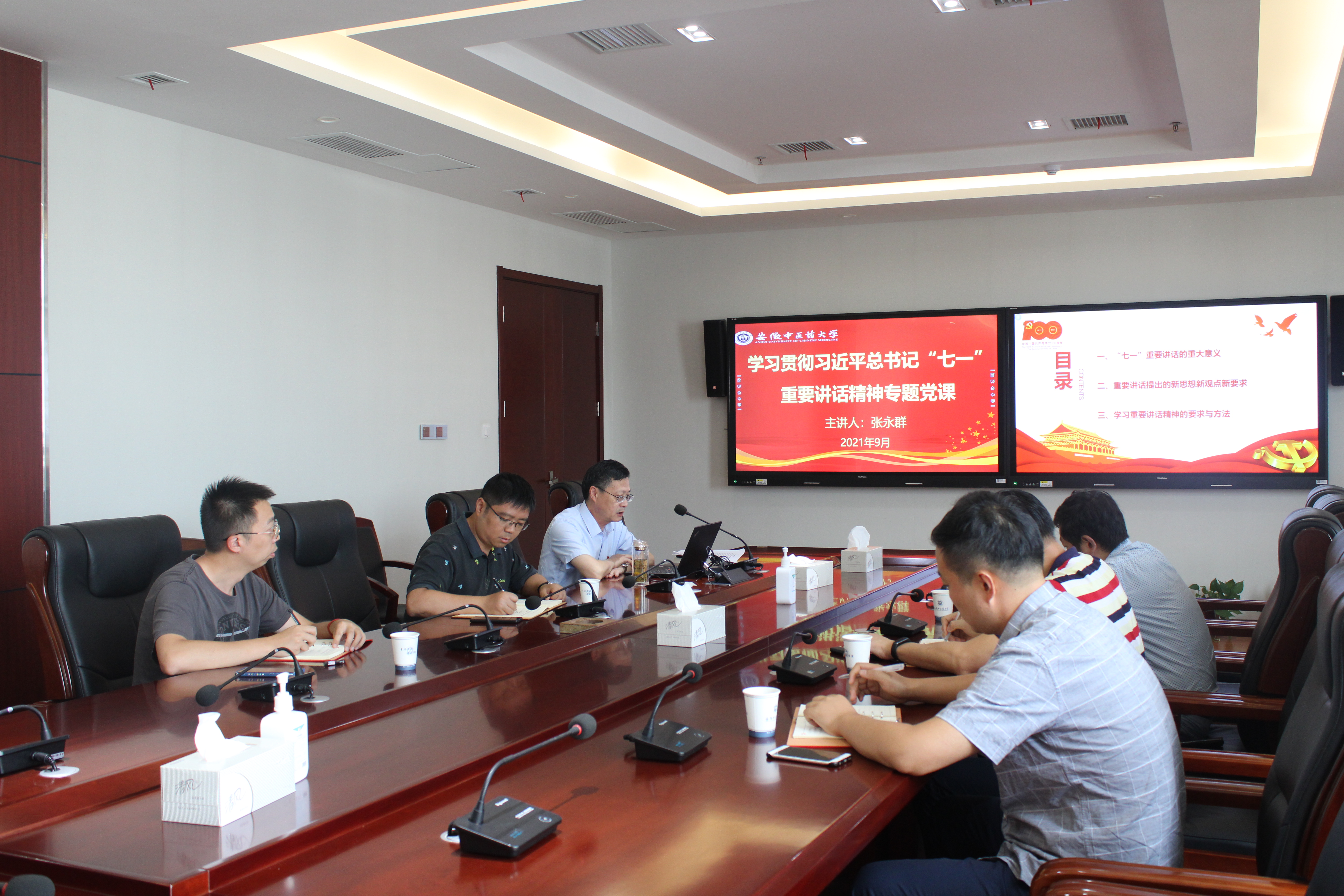 为深入学习贯彻习近平总书记在庆祝中国共产党成立100周年大会上的重要讲话精神,推动党史学习教育持续走深走实,9月29日下午,校党委副书记张永群为学生处党支部全体党员讲授学习贯彻习近平总书记“七一”重要讲话精神专题党课。