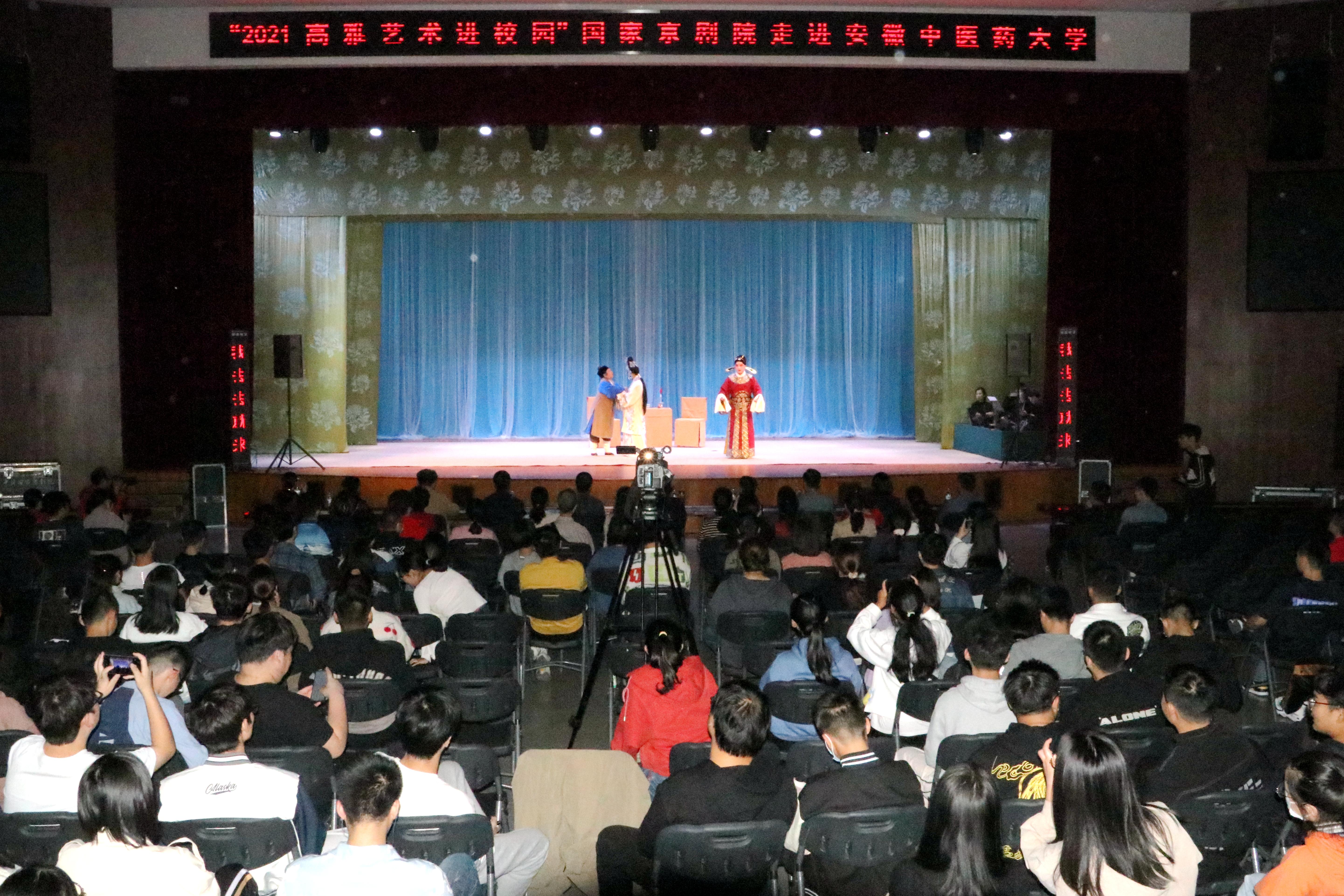 为丰富校园文化生活,提高广大学生对高雅艺术的鉴赏能力,10月12日,由教育部、文化和旅游部、财政部主办的“2021高雅艺术进校园”国家京剧院专场活动在少荃湖校区大学生活动中心隆重上演。国家京剧院副院长林琳,校党委副书记张永群,校纪委书记、监察专员石金明,校党委常委、机关党委书记、巡察办主任罗绍明,校党委常委、人事处处长聂久胜,校党委常委、党委宣传统战部部长吴达武及相关职能部门负责人、离退休老同志和在校生代表近300人现场共同观赏精彩演出。