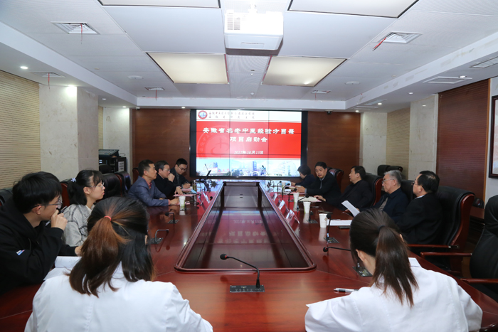 10月13日下午,我校第二临床医学院组织召开安徽省名老中医经验方目录建设项目启动会。学校党委常委、副校长、省中医药科学院专职副院长李泽庚,教授储全根,中医学院院长方向明,第二临床医学院主任医师龚维义担任指导专家。第二临床医学院党委书记雷黎,党委副书记、院长董昌武,副院长李梦及安徽省名老中医经验方目录建设项目组成员参加会议。