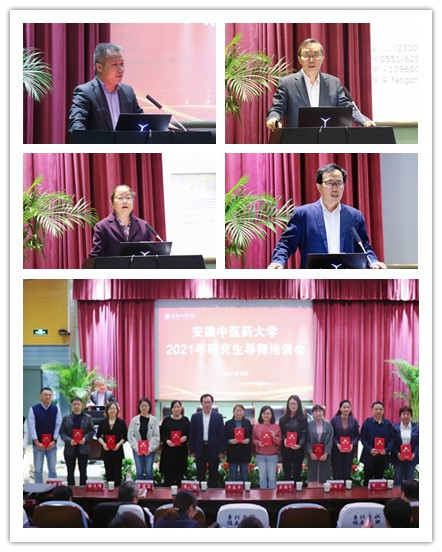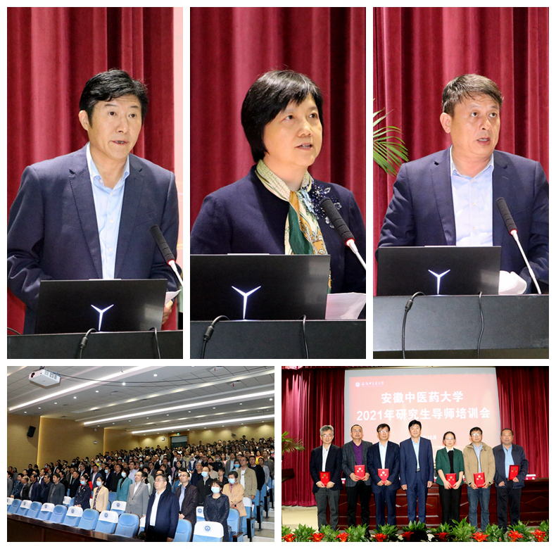 下午的培训会现场,由研究生院副院长胡建鹏教授主持。第一临床医学院方朝晖教授、药学院吴虹教授、研究生院院长王鹏教授分别作了题为《新起点新舞台:中医研究生的实践与思考》、《三尺讲台 我心安处——与博硕士生导师带教经验交流》、《深化研究生教育改革 全面提升中医药研究生培养质量》的讲座,几位专家分别从不同角度介绍了本人对研究生教育的思考与体会,并结合个人实际工作经历,对如何提高研究生培养质量以及如何做一名合格的研究生导师分享了经验和做法。
