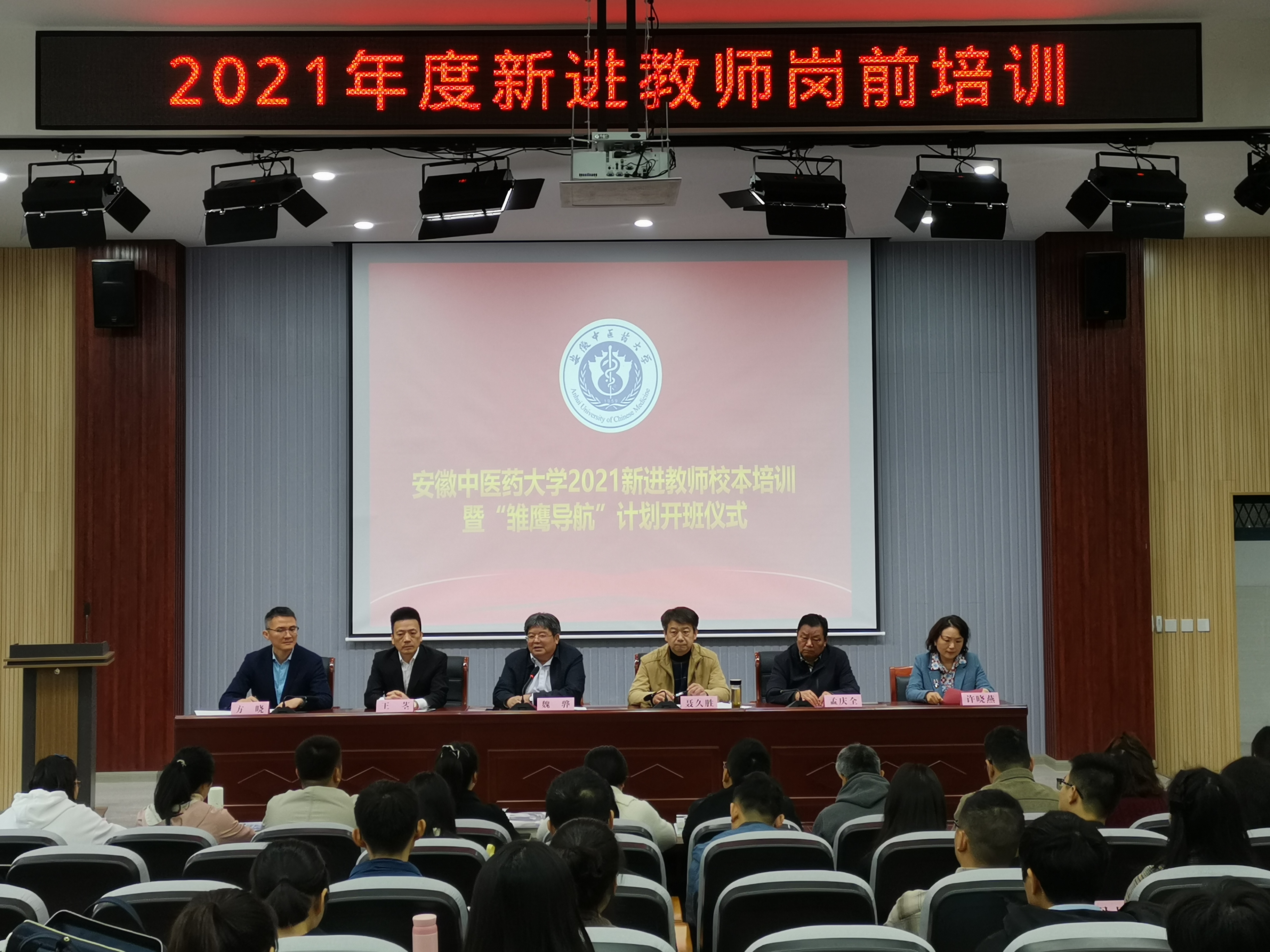 根据《安徽省教育厅关于做好2021年新进教师岗前培训工作的通知》文件精神要求,结合学校培训工作安排, 10月18日上午,学校召开本年度教师岗前培训开班仪式,学校党委常委、副校长魏骅出席并讲话,学校党委常委、人事处处长聂久胜,教务处处长王茎、教学评价与教师发展中心主任孟庆全等参加开班仪式。