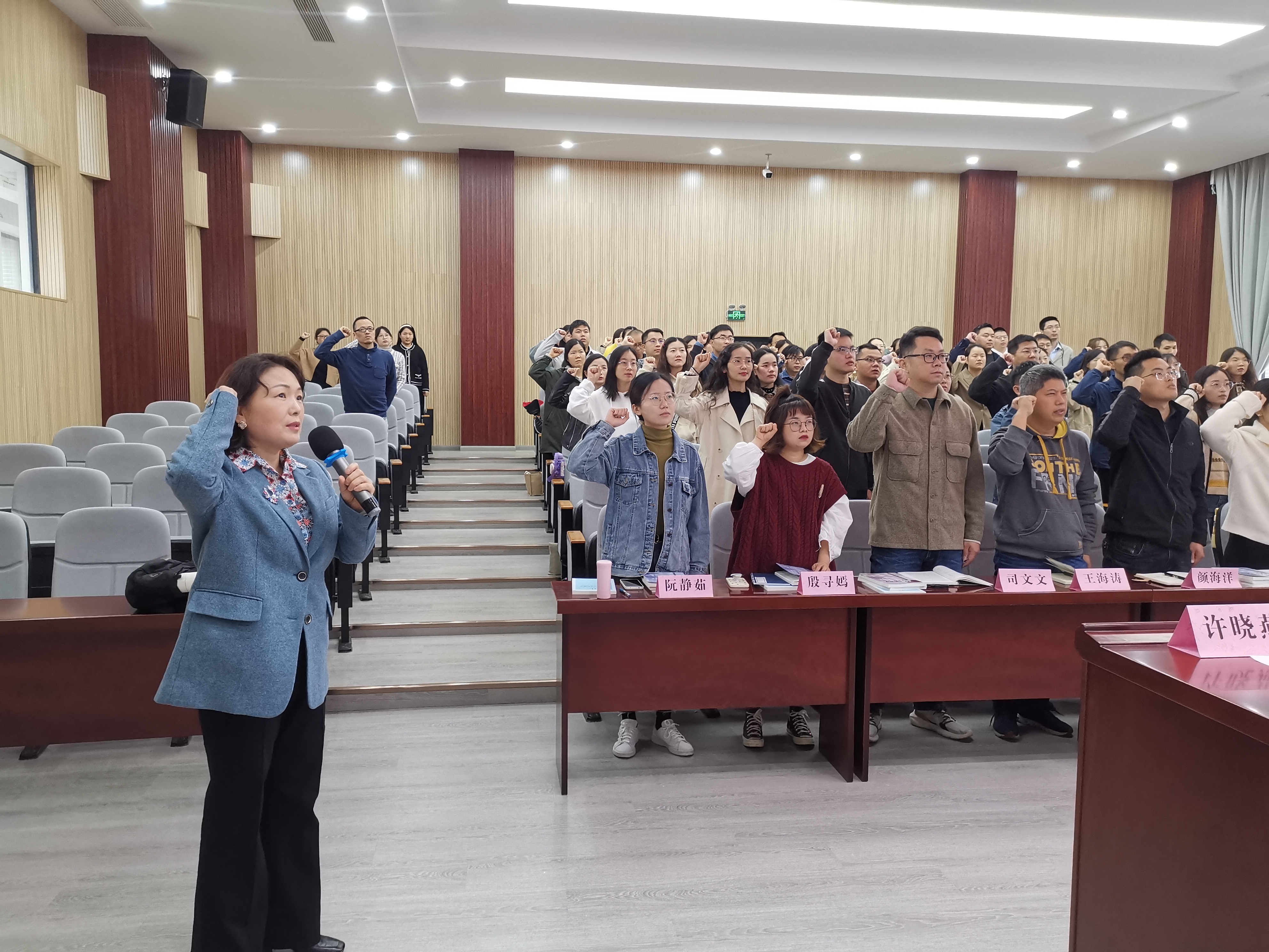 开班仪式上,聂久胜以“学习习近平总书记七一讲话精神,争做四有好老师”为主题做专题讲座。全体新进教师进行了宣誓活动。(人事处/图文 方晓/审核 尤志成/编发)