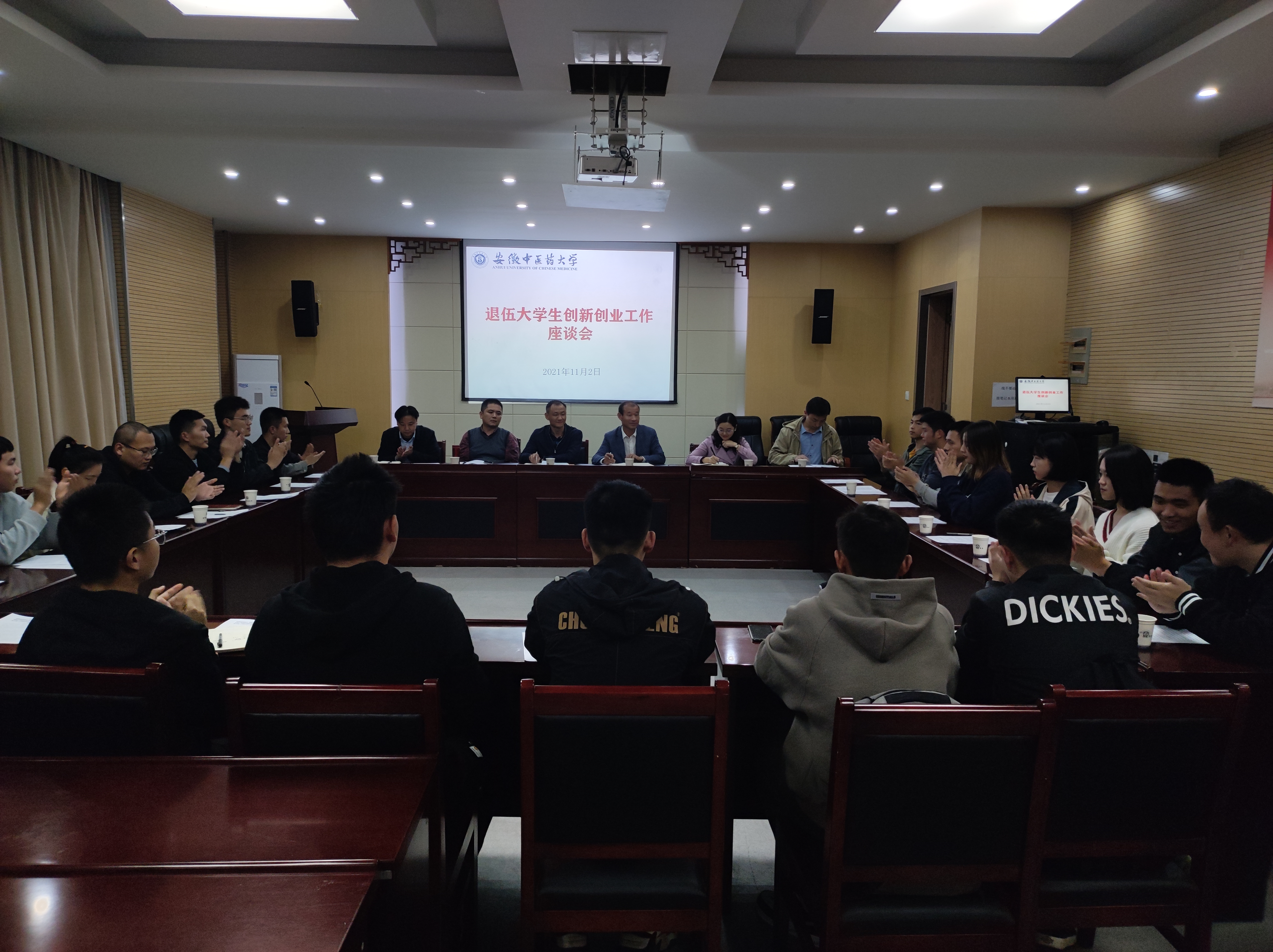 会上,与会老师表示,中国人民解放军是当代中国最可爱的人,他们保家卫国,抗疫抢险都冲锋在前。我们退伍同学们投身军营,为国尽忠,为校争光,是学校最可爱的人,是同学们尊敬的“兵哥哥、兵姐姐”,是老师、同学们的榜样。希望同学们能做到退伍不褪色,完成军营生活到校园生活、他律到自律、军事学习到专业学习等方面的转变。与会老师分别从各部门的职责范围介绍了国家关于退伍军人创新创业的相关政策创新创业工作,分享了创新创业工作的经验成果,说明了退伍大学生的创新创业优势,重点介绍了“互联网+”大赛、挑战杯、三创赛等创新创业类竞赛,以及大学生众创空间、孵化基地政策。
