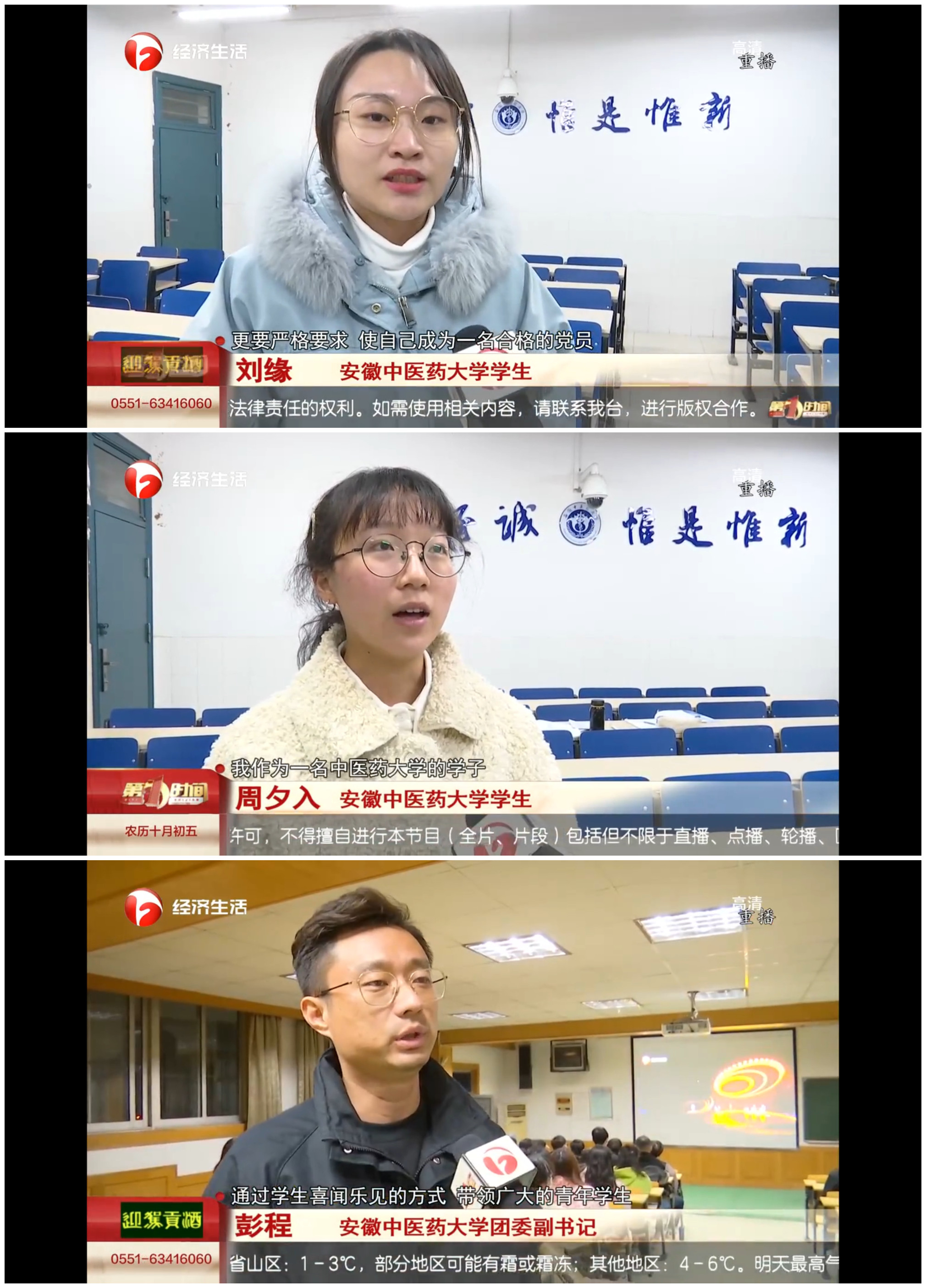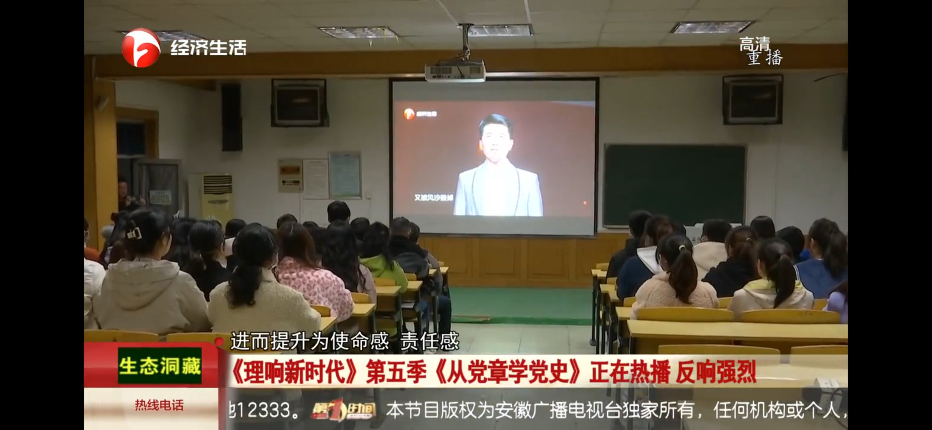 为进一步推进我校团员青年“学党史、强信念、跟党走”,我校于11月12日组织学生观看《理响新时代》第五季《从党章学党史》节目,并接受安徽卫视经济生活频道《第一时间》专题采访。