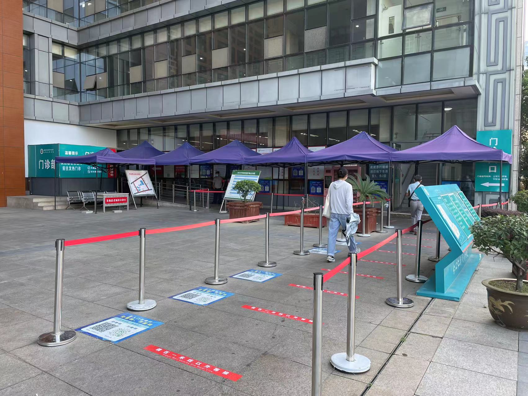 今年入夏以来,高温持续,但疫情防控依旧不可放松,查验二码、测量体温、流调询问环节一个都不可以少。为了避免患者在预检分诊处排队时暴晒不适,门诊部及时在预检分诊处设置一排遮阳棚,搭建清凉长廊,为患者营造一片清凉空间。同时,形成降温缓冲空间,避免患者直接从烈日下进入门诊预检处,体表温度高造成测温机器报警、需二次测量的现象,大大提高了通行效率。