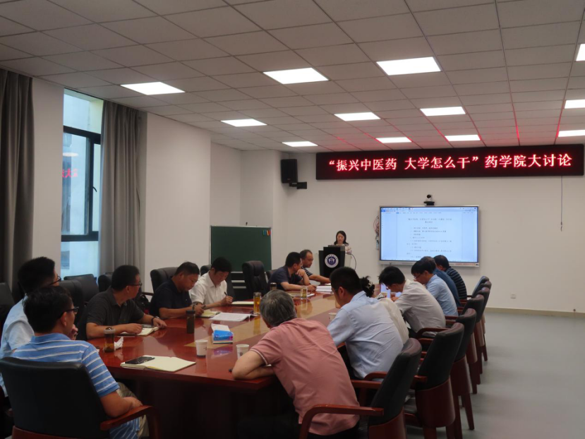 8月12日上午,学校党委副书记、校长彭代银到药学院调研指导“振兴中医药,大学怎么干”药学院重点项目讨论,药学院领导班子、各(系)中心主任、教师党支部书记及研究所所长等参会。讨论会由药学院党委书记胡卿主持。
