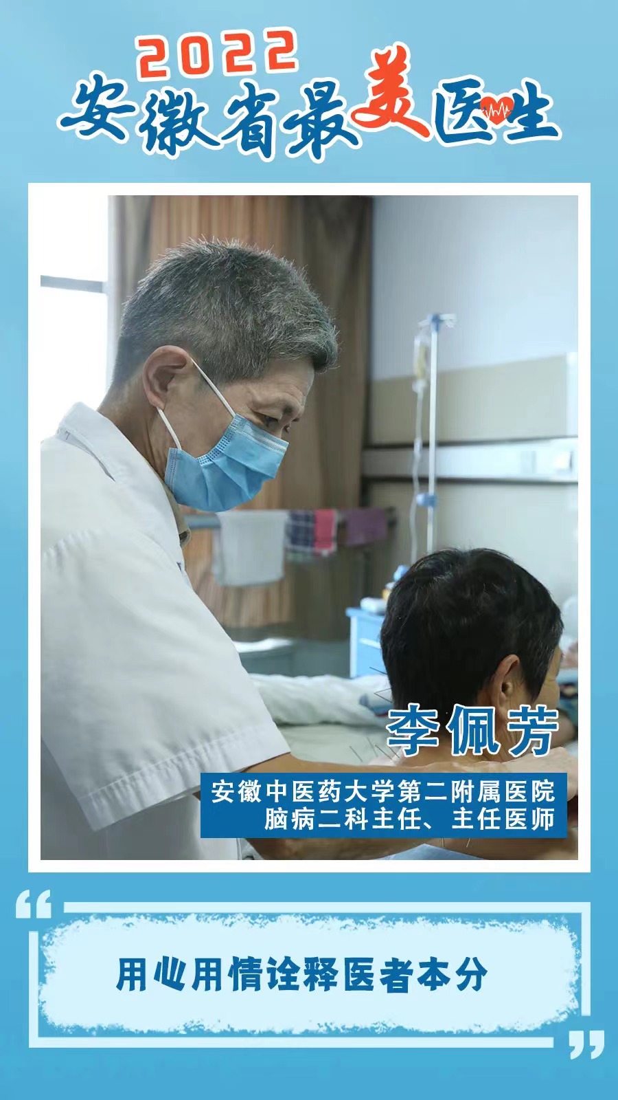 为大力弘扬伟大抗疫精神和崇高职业精神,激励全省广大卫生健康工作者守医者初心、担健康使命,凝聚奋进力量,全力推进健康安徽建设,在第五个“中国医师节”到来之际,省委宣传部、省卫生健康委组织开展2022年“安徽省最美医生”学习宣传活动,向社会公开发布2022年“最美医生”先进事迹。我校第二附属医院李佩芳被授予2022年“安徽省最美医生”称号。