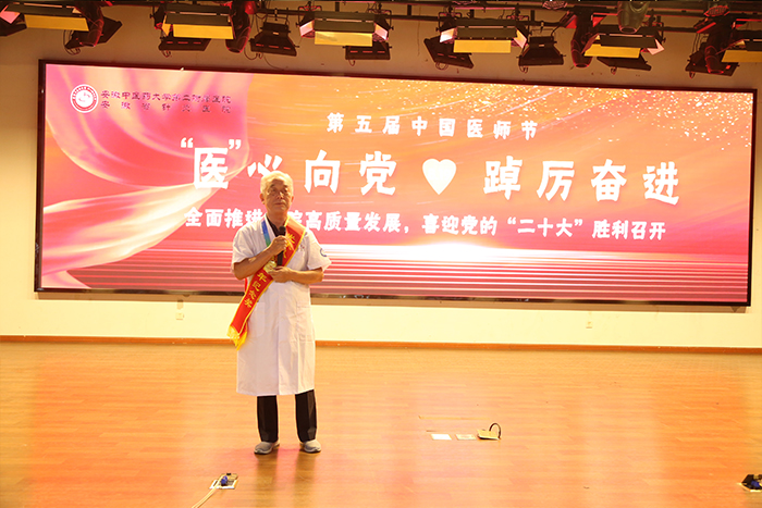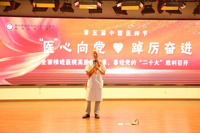 期间,医师代表“安徽最美医生”李佩芳发言,勉励医务工作者要坚定从医初心,践行医者使命,矢志不渝,步履坚定,不负韶华。