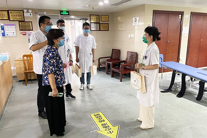 当天上午,医院领导班子还分别带队深入全院各病区、各科室,亲切看望慰问坚守在临床一线的医师,为他们送去慰问礼品,并致以诚挚的问候和祝福。勉励大家立足本职岗位,驰而不息地为守护人民群众身体健康、促进医院高质量发展继续努力。(第二临床医学院/文图 雷黎/审核 刘晨/编发)