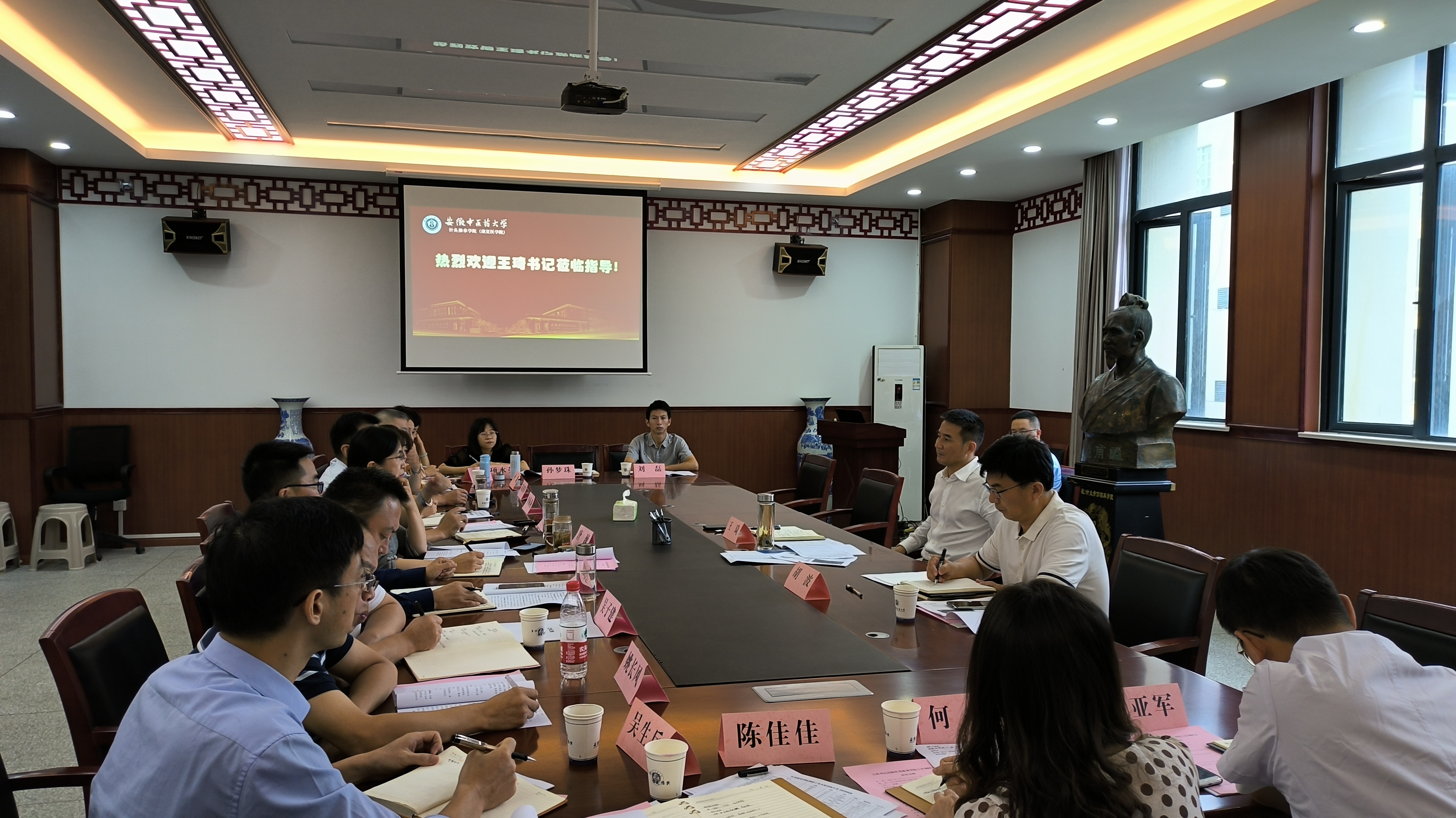 8月31日上午,学校党委书记王琦赴针灸推拿学院调研指导工作,学校办公室主任胡波陪同调研。针灸推拿学院党政领导班子全体成员、系、(中心)主任、教师代表、各科室负责人参加座谈会。会议由针灸推拿学院院长唐巍主持。