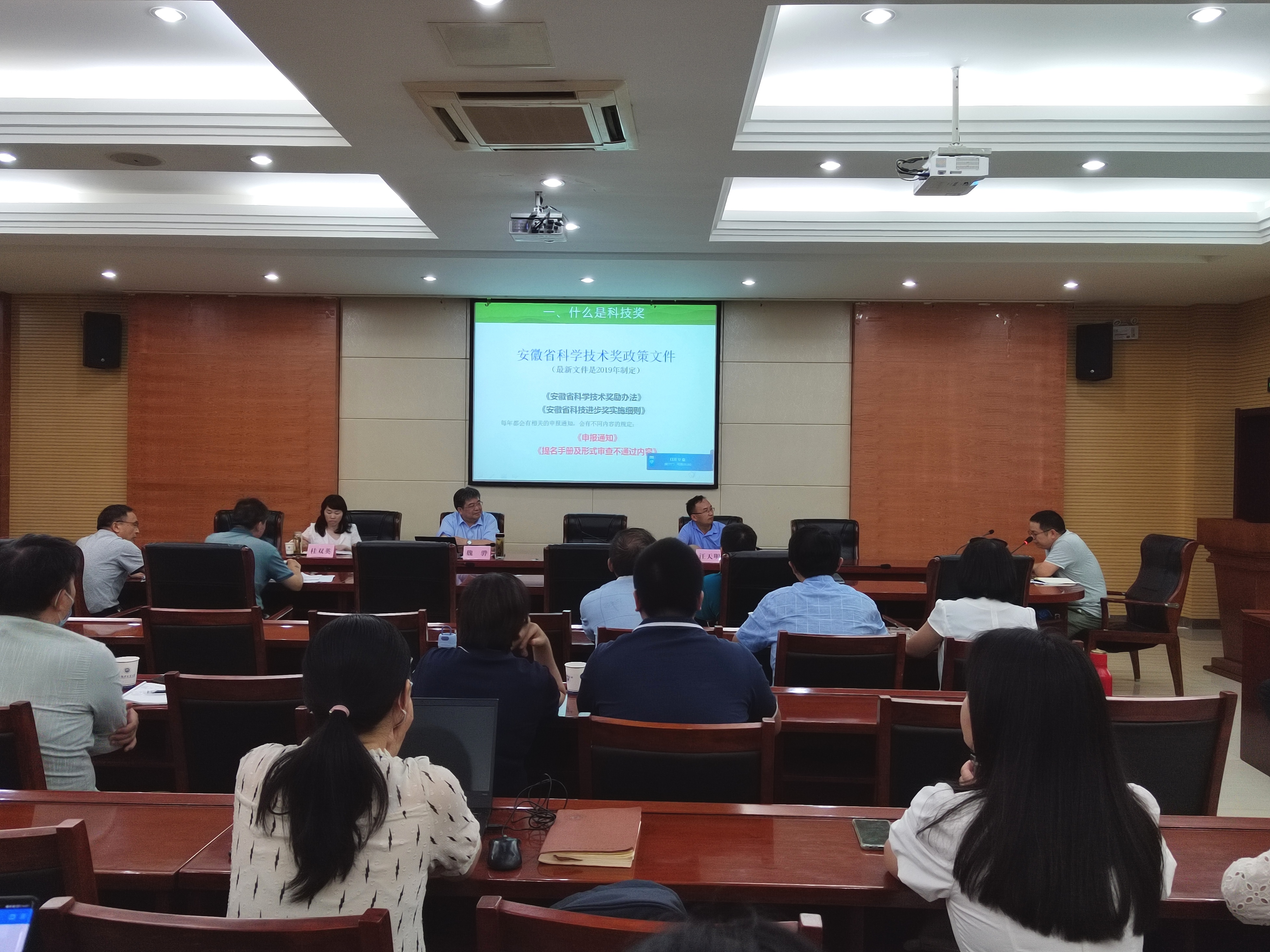 辅导会特别邀请安徽省高新技术发展中心姚宁广研究员作专题辅导报告,安徽省科学技术一等奖获得者桂双英教授作经验交流。姚宁广多年从事省科技奖的申报管理工作,掌握省科技奖的最新政策动态,辅导报告从评审流程、报奖选题、成果凝练、提名材料撰写及科技奖形式审查五个方面做了全面讲解。桂双英结合省科技奖一等奖获奖体会,强调科技创新是核心竞争力,提出“基于成果梳理进而完成提名书”的撰写思路,并建议申报老师仔细研读相关文件,内容详实、方法具体,对科技奖申报具有非常强的可操作性指导意义。
