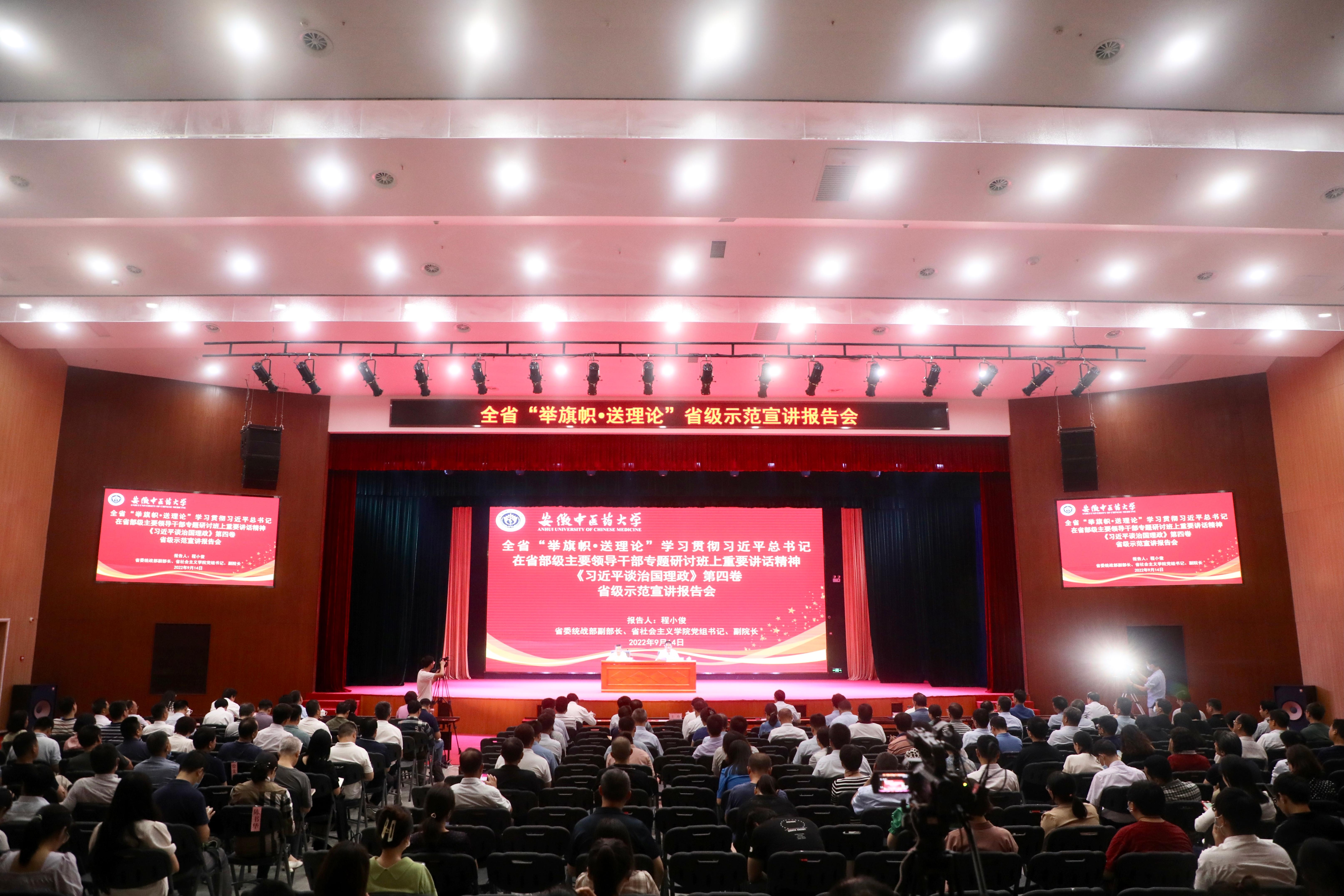 9月14日下午,全省“举旗帜•送理论”学习贯彻习近平总书记在省部级主要领导干部专题研讨班上重要讲话精神、《习近平谈治国理政》第四卷省级示范宣讲报告会走进安徽中医药大学。安徽省级示范宣讲团成员、省委统战部副部长、省社会主义学院党组书记、副院长程小俊作宣讲报告。校党委书记王琦主持报告会。