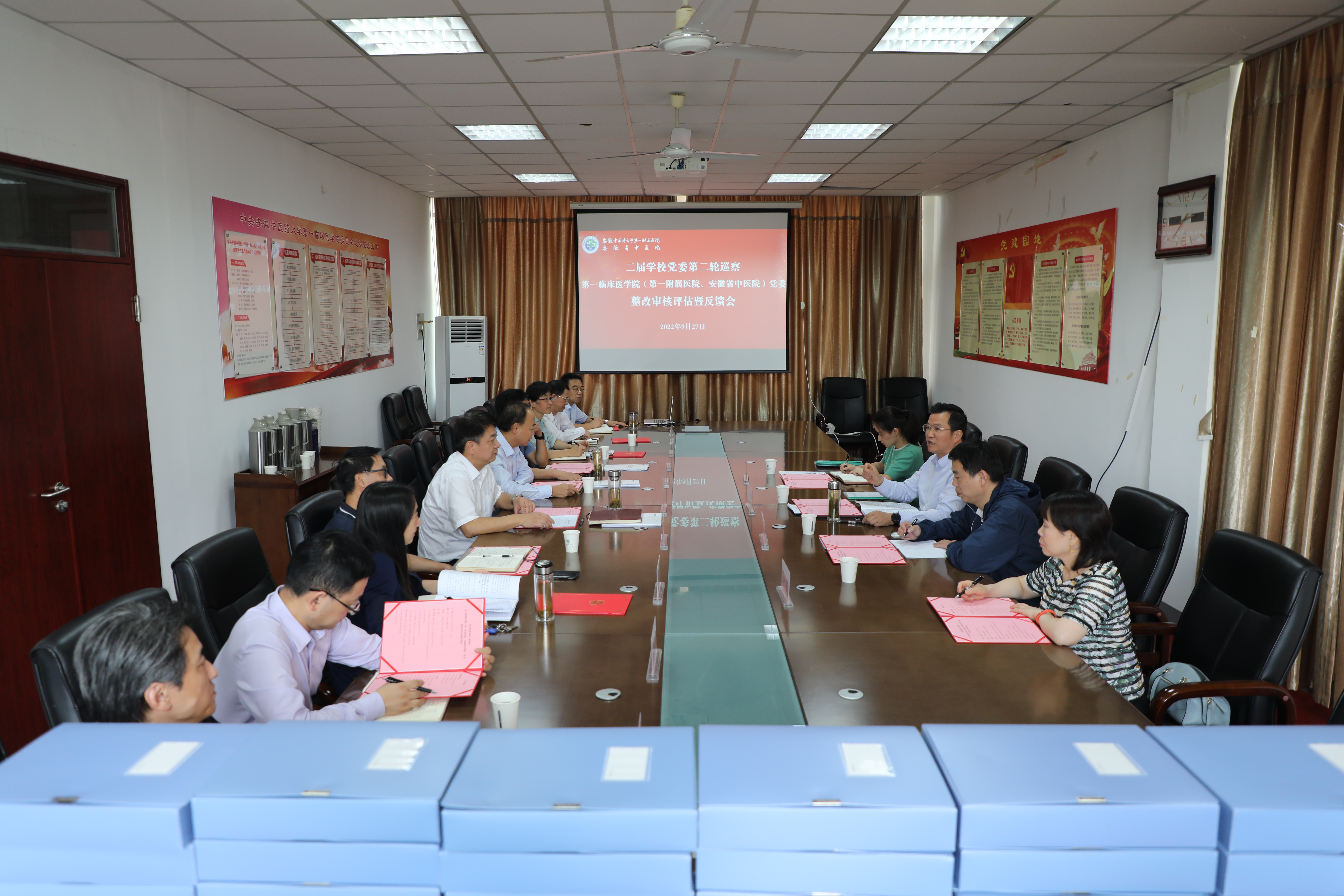 依据《中共安徽中医药大学委员会巡察工作办法》,9月27日下午,学校党委常委、巡察工作领导小组成员、校巡察办主任罗绍明带队审核评估第一临床医学院巡察整改工作。学校党委常委、医院党委书记聂久胜及第一临床医学院党政班子成员参加会议。