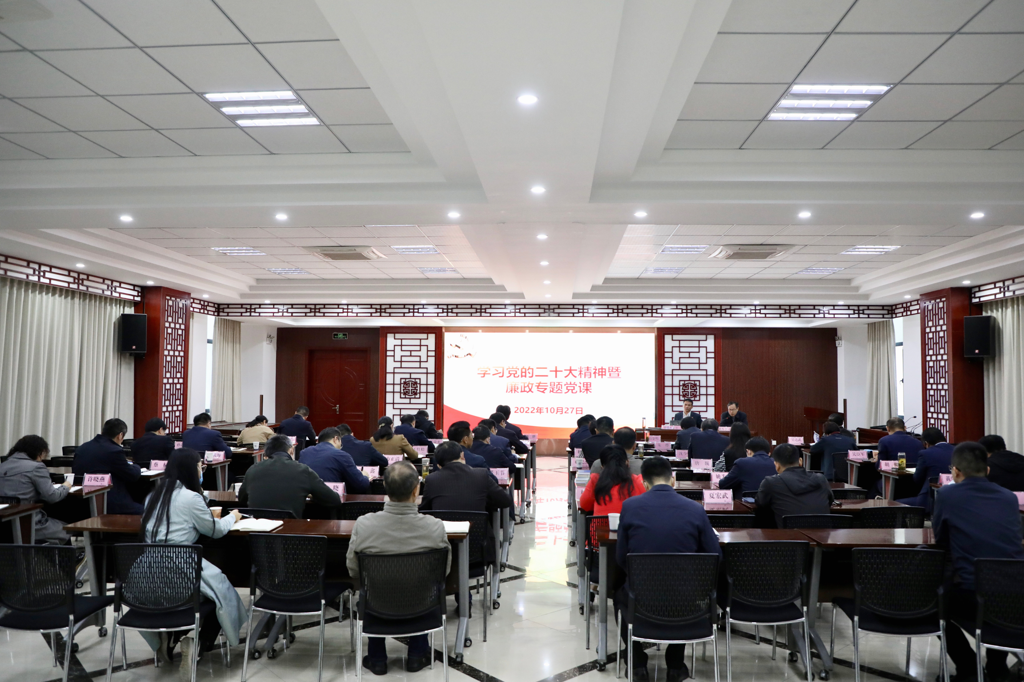 10月27日上午,学校召开学习党的二十大精神暨廉政专题党课报告会,学校党委书记王琦作党课报告。他强调,要深入学习贯彻党的二十大精神特别是报告中关于全面从严治党的重要论述,永葆自我革命精神,一体推进不敢腐、不能腐、不想腐,持续营造风清气正的政治生态和干事创业的良好环境,为高水平大学建设和争创“双一流”提供坚强保障。驻少荃湖校区学校领导、党委委员、纪委委员、各单位(部门)党政主要负责同志参会。党委常委、纪委书记、监察专员石金明主持会议。