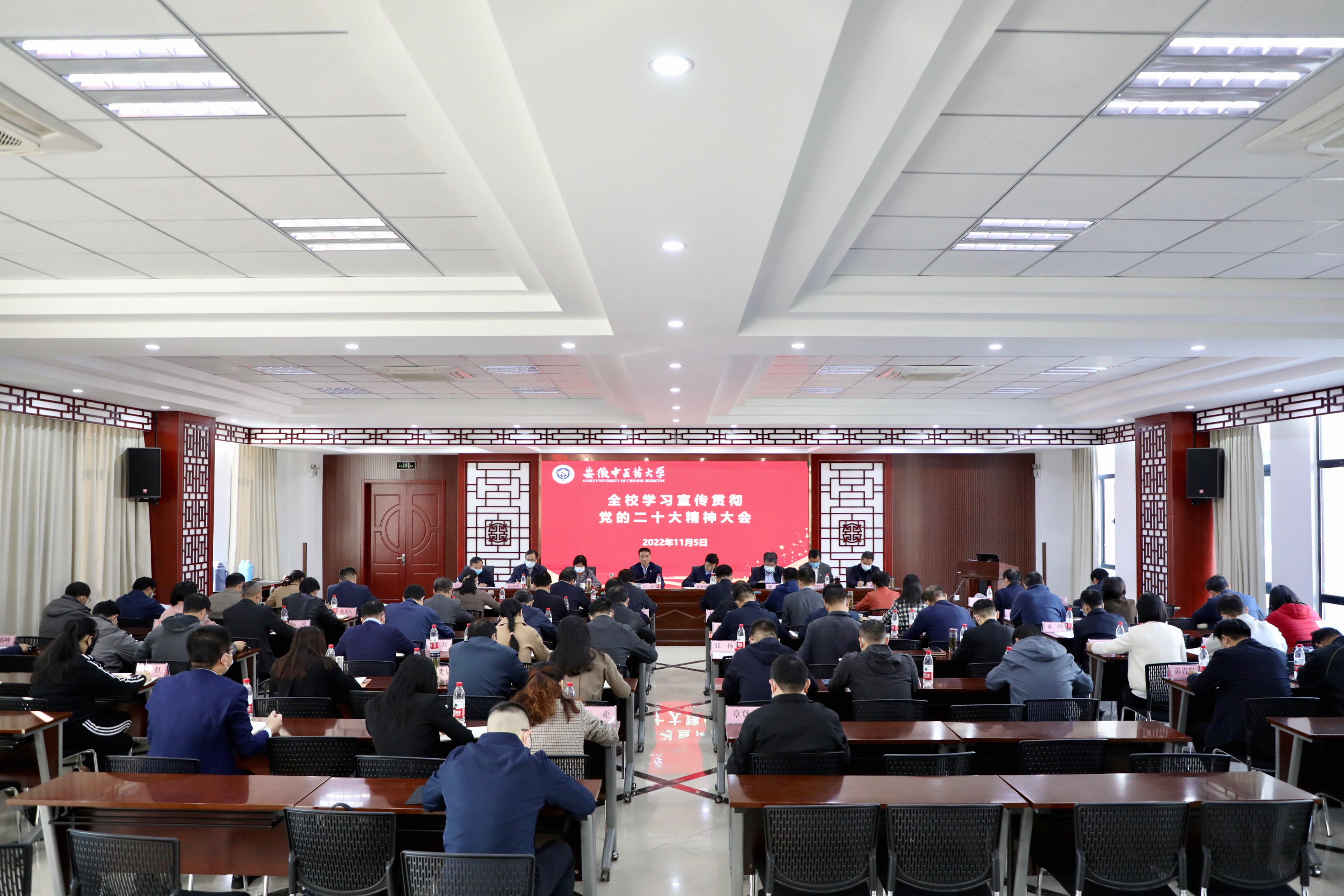 11月5日上午,学校召开学习宣传贯彻党的二十大精神大会。会议强调,要以习近平新时代中国特色社会主义思想为指导,衷心拥护“两个确立”,忠诚践行“两个维护”,以昂扬的精神状态,务实的工作作风,将学习宣传贯彻落实党的二十大精神新成效转化为推动学校“双一流”建设和高质量发展的强大动力,传承精华、守正创新,为实现中华民族伟大复兴、建设现代化美好安徽作出新的更大贡献。