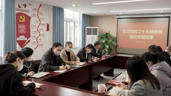 为进一步增强党员党性观念,扎实推进校企党风廉政建设,贯彻落实党的二十大精神,11月13日下午,学校党委常委、副校长许钒到资产公司宣讲党的二十大精神暨廉政专题党课,资产公司党总支委员、中层及以上干部参加本次学习。