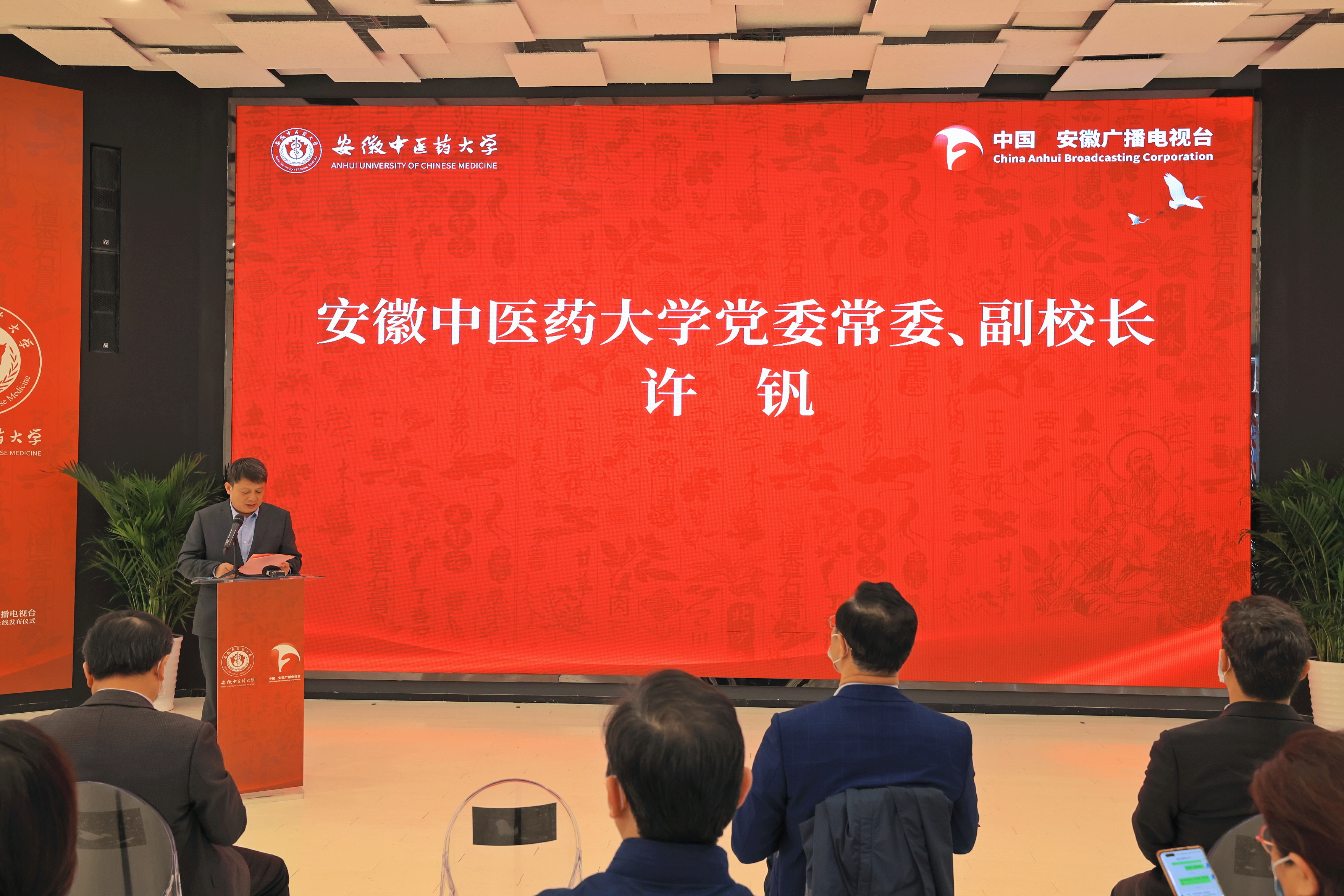 许钒指出,安徽中医药大学与安徽广播电视台签署战略合作协议,共同弘扬中医药传统文化,共同传递中医药美妙声音,共同传播中医药健康理念,共同推进健康中国建设,这是安徽中医药人和安徽广播电视人深入贯彻落实党的二十大精神的生动实践。希望广大媒体在内的各行各业为中医药发展鼓与呼,为进一步提振中医药人促进中医药传承创新发展增添新的动力,通过多种合作做到“两家变一家”。希望双方分别发挥中医药的专业优势和全媒体的传播的优势,做到跨行不隔行。希望双方发挥各自特长,汲百姓所需,传健康所要,呈中医魅力,做到“走心又走实”。