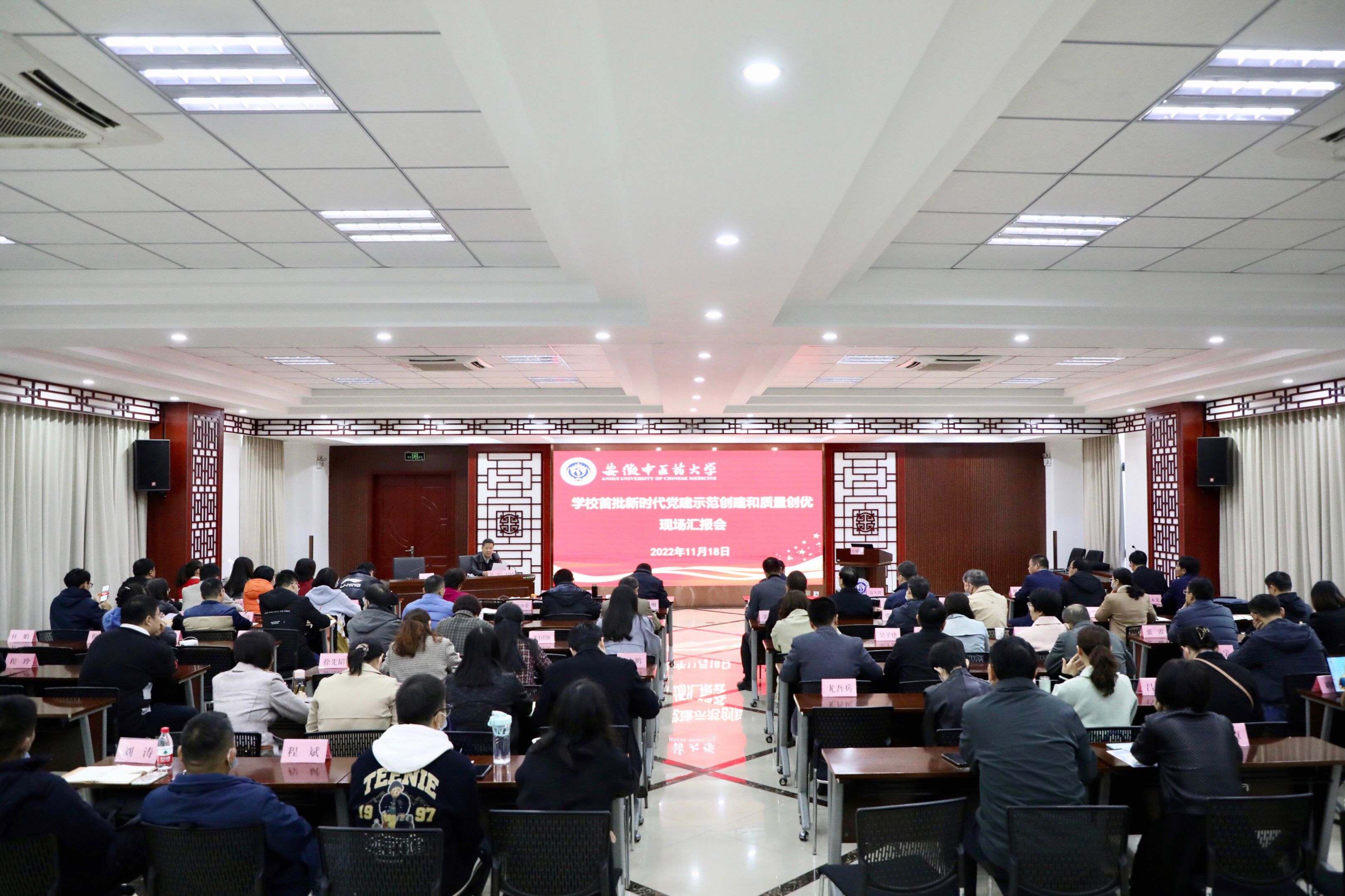 11月18日,学校召开首批校级党建“双创”工作现场汇报会。校党委副书记张永群出席会议并讲话,各二级党组织书记、副书记、纪检委员、党政办主任,首批校级“双带头人”教师党支部书记工作室申报人员参加会议,会议由校党委常委、组织部部长田磊主持。