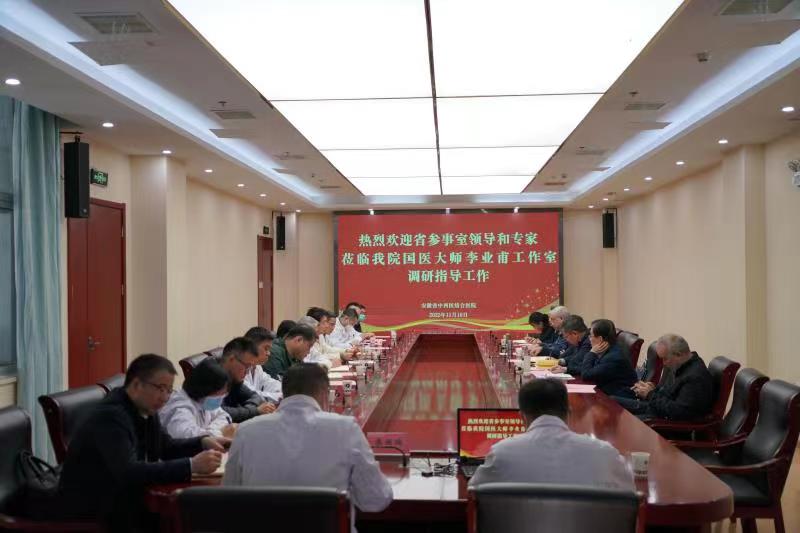 为贯彻落实全省中医药振兴发展大会精神,加强皖港澳中医药文化交流平台建设,巩固拓展皖港澳中医药合作的成果,发挥我省国医大师这一宝贵资源在皖港中医药交流中的作用,11月16日,安徽省人民政府参事室党组成员、副主任梁冰一行至第三临床医学院李业甫国医大师工作室开展调研。省文史研究馆副馆长张畅,省政府参事江海河,学校党委常委、第三临床医学院党委书记聂久胜,医院党委副书记翟从永,副院长杨永晖,国医大师李业甫多名师承弟子及海外联谊中心人员参加座谈。