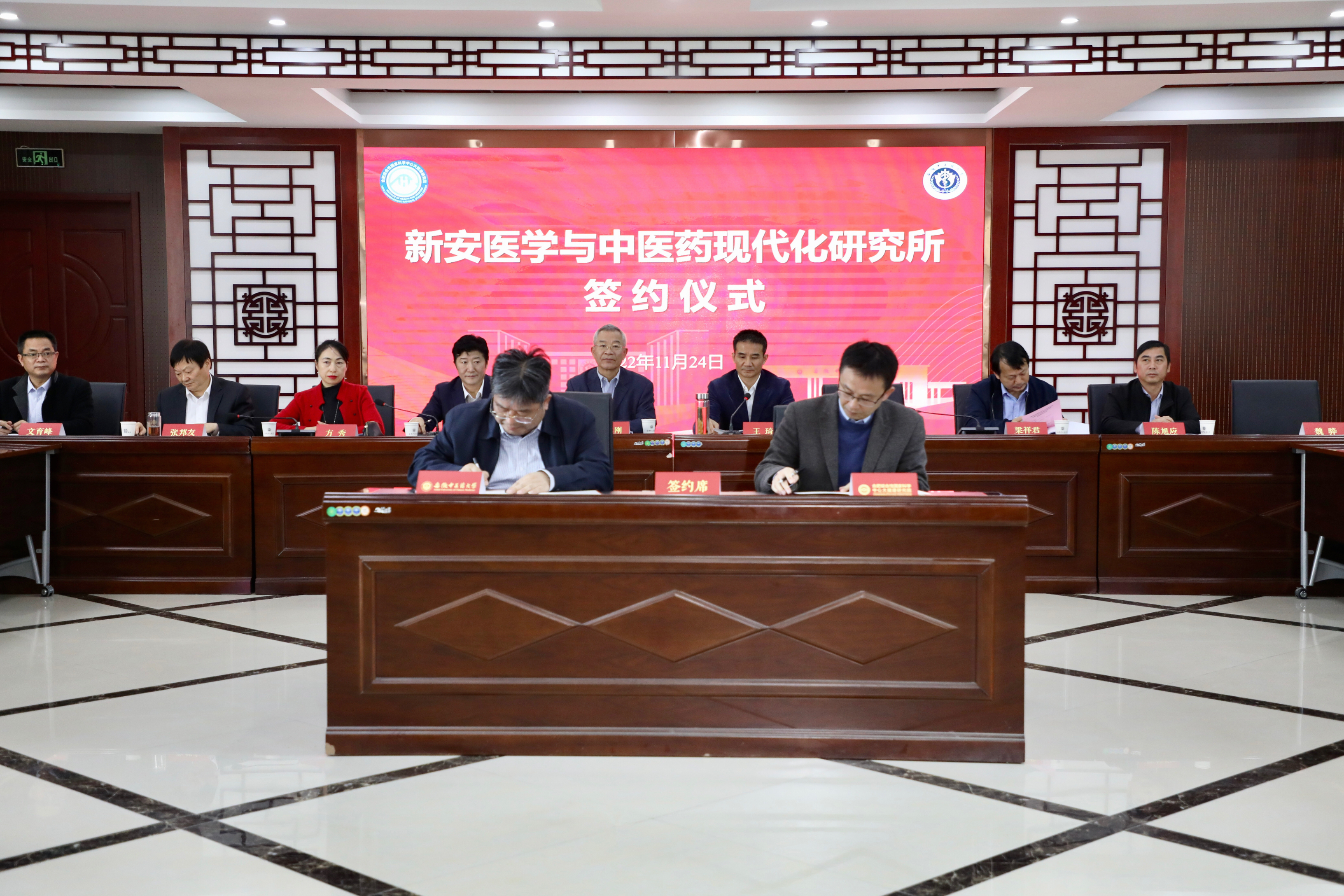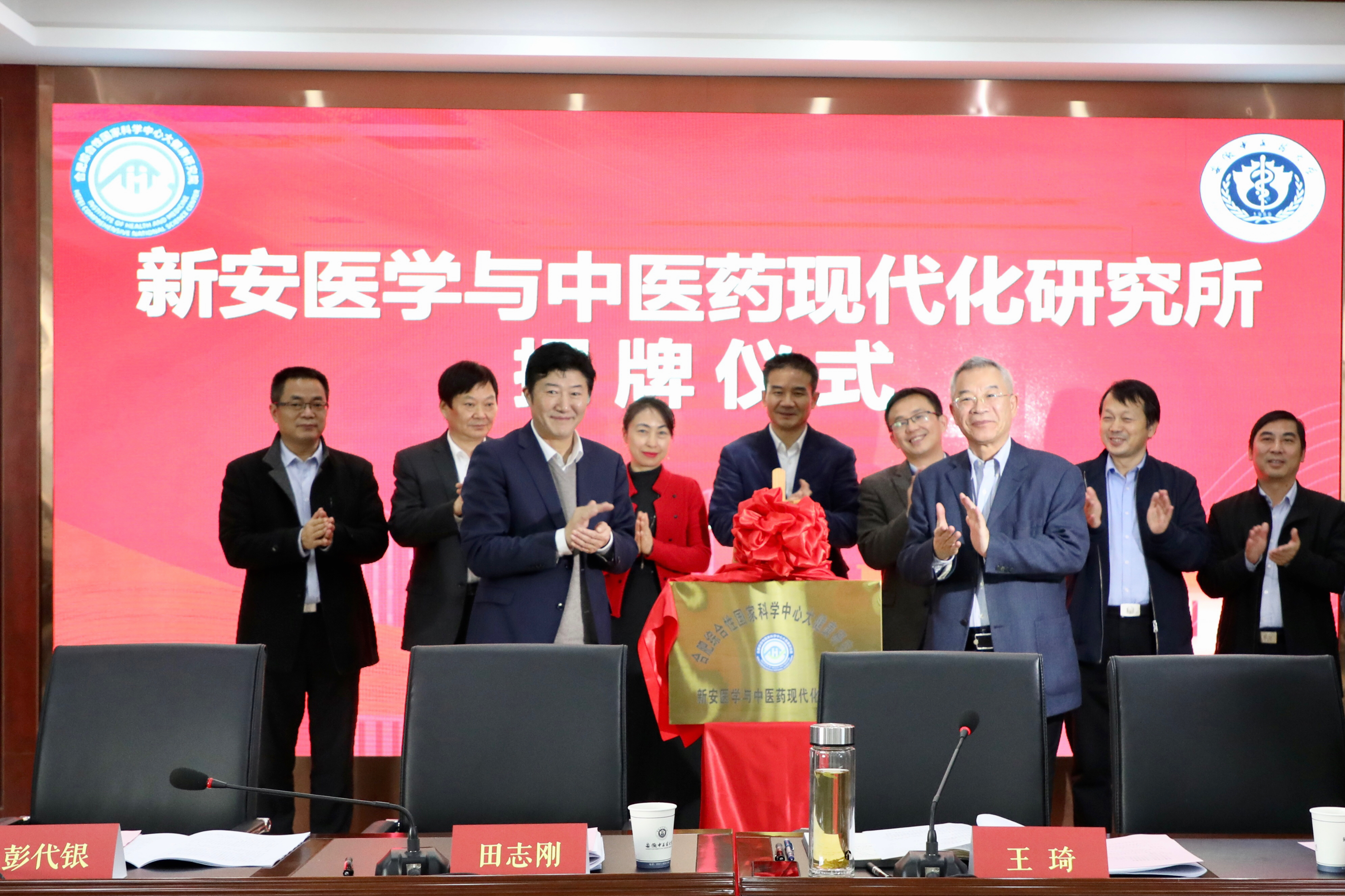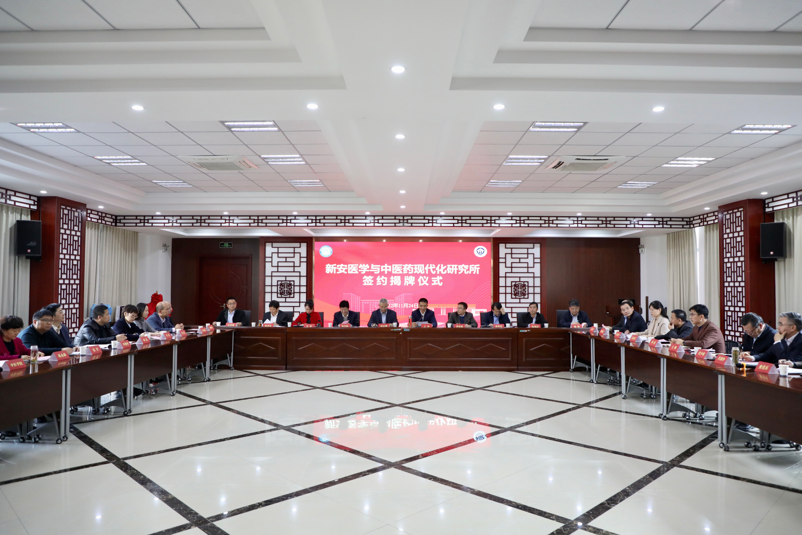 为认真学习宣传贯彻党的二十大精神,推动中医药传承创新发展任务落地,11月24日,在安徽中医药大学少荃湖校区举行了合肥综合性国家科学中心大健康研究院新安医学与中医药现代化研究所(以下简称“研究所”)签约揭牌仪式。安徽省发改委、省教育厅、省科技厅、省卫生健康委等相关厅局领导,合肥综合性国家科学中心大健康研究院、皖南医学院以及安徽中医药大学相关领导出席会议。会议由安徽中医药大学党委书记王琦主持。