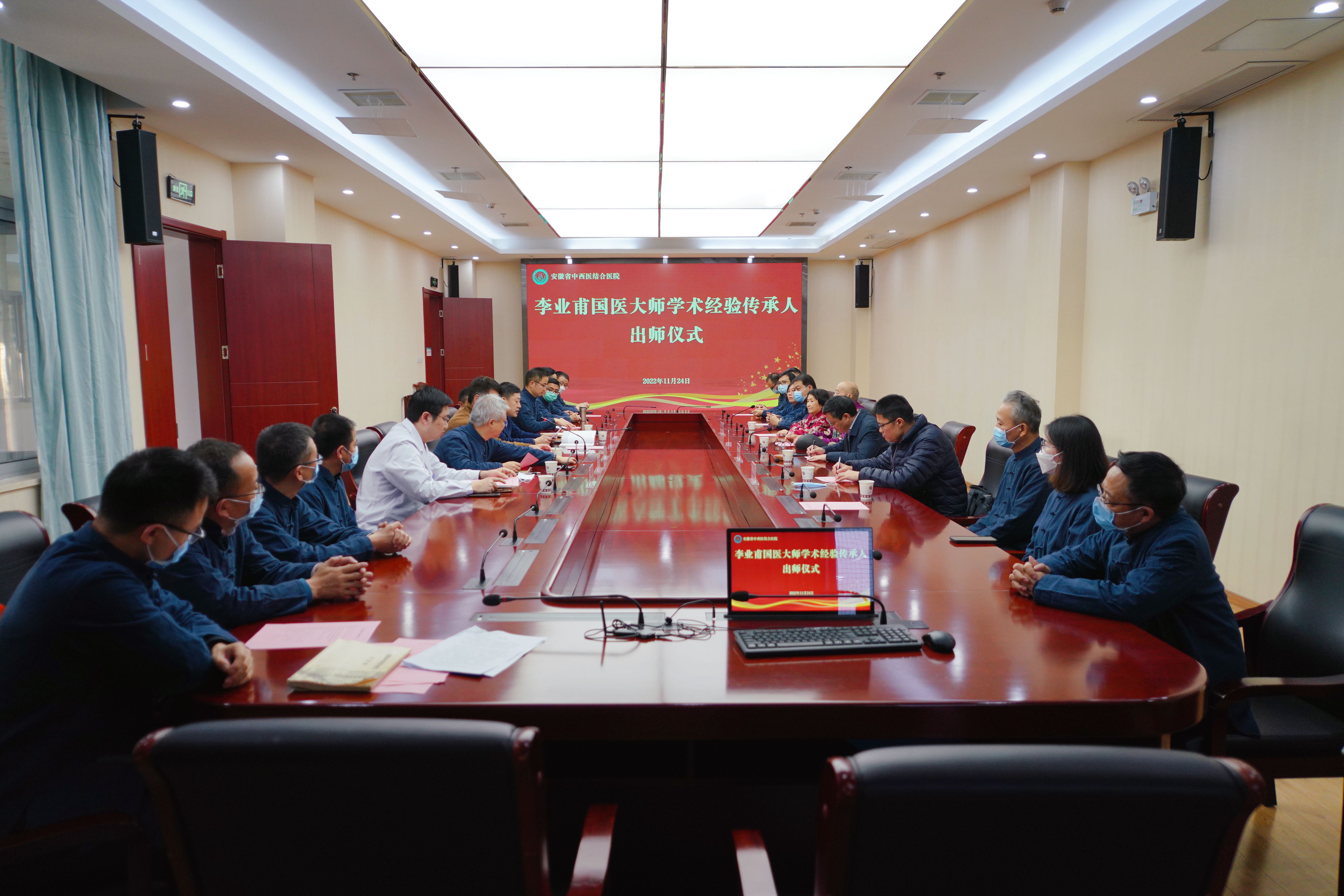 11月24日,第三临床医学院在康复中心三楼会议室隆重举行李业甫国医大师学术经验传承人出师仪式,杨永晖等31位学术经验传承人修业期满,经考核合格准予出师。国医大师李业甫携夫人白效曼,安徽省中医药管理局中医药发展处副处长吴化成,学校党委副书记张永群,学校党委常委、第三临床医学院党委书记聂久胜出席出师仪式,第三临床医学院部分班子成员及拜师弟子代表参加仪式。会议由第三临床医学院院长韩永升主持。