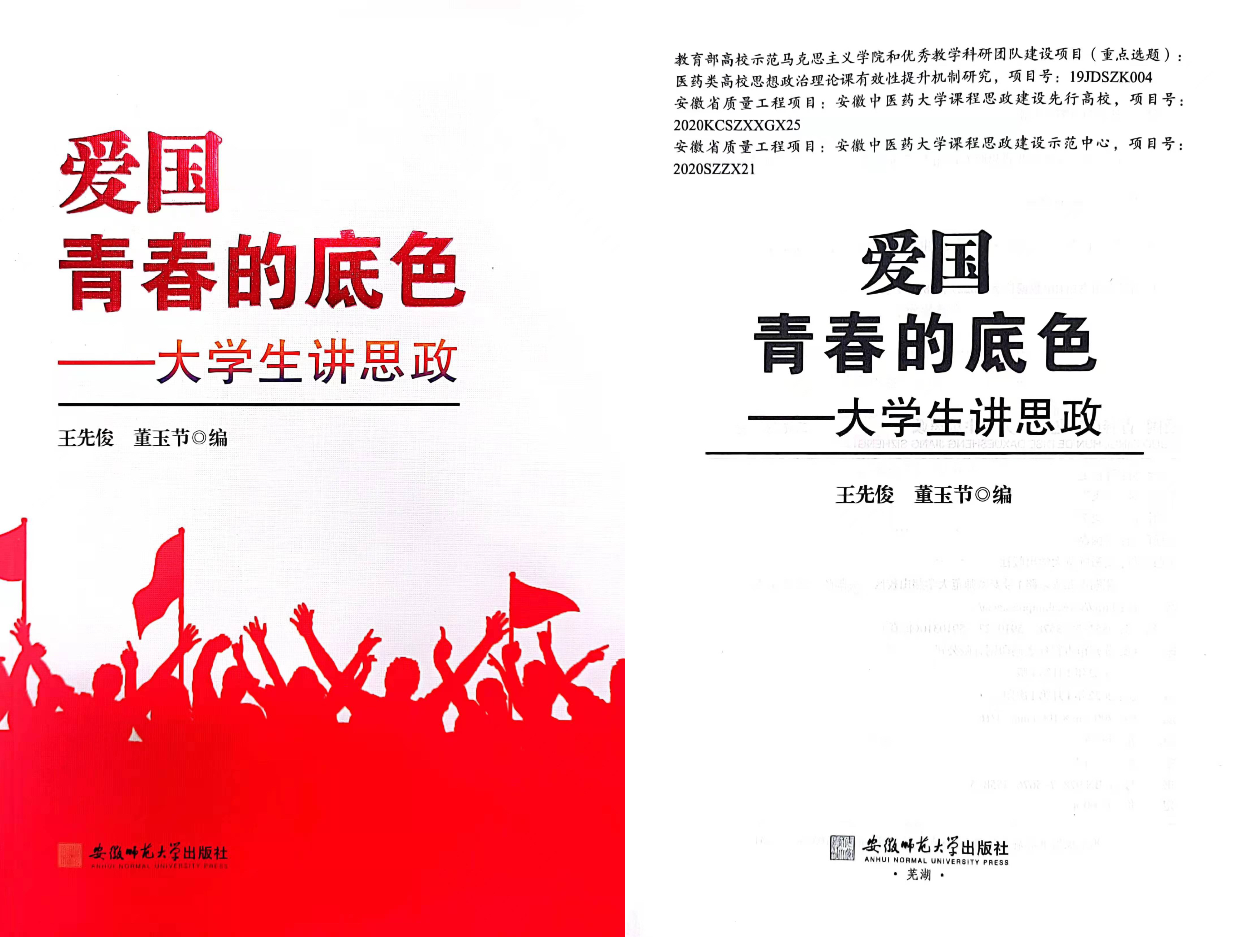 近日,由我校王先俊教授、董玉节教授主编的《爱国 青春的底色——大学生讲思政》在安徽师范大学出版社出版。