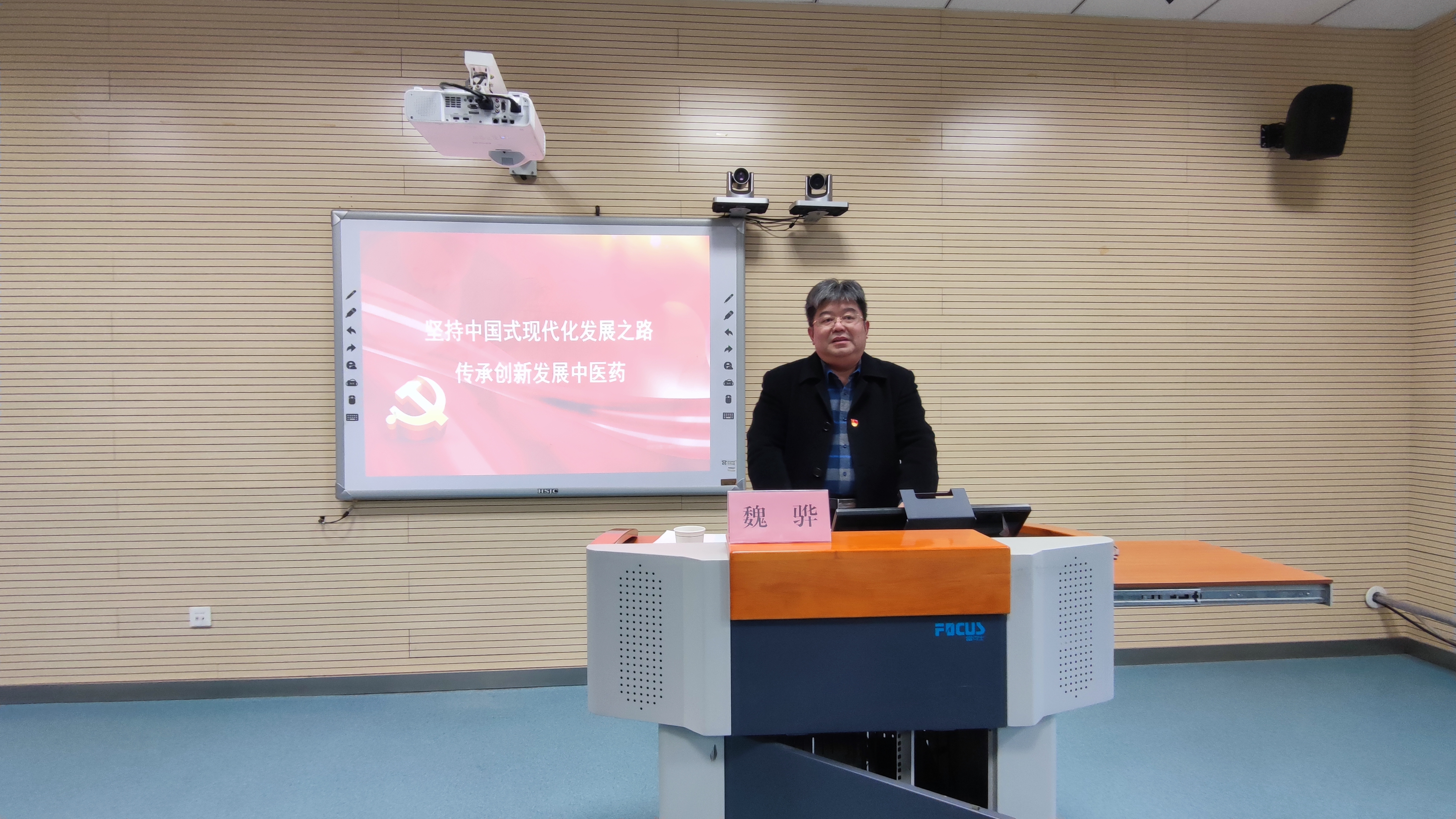 魏骅以《坚持中国式现代化发展之路,传承创新发展中医药》为题,从党的二十大报告的内容、“六个必须坚持”及传承创新发展中医药三大方面具体展开。