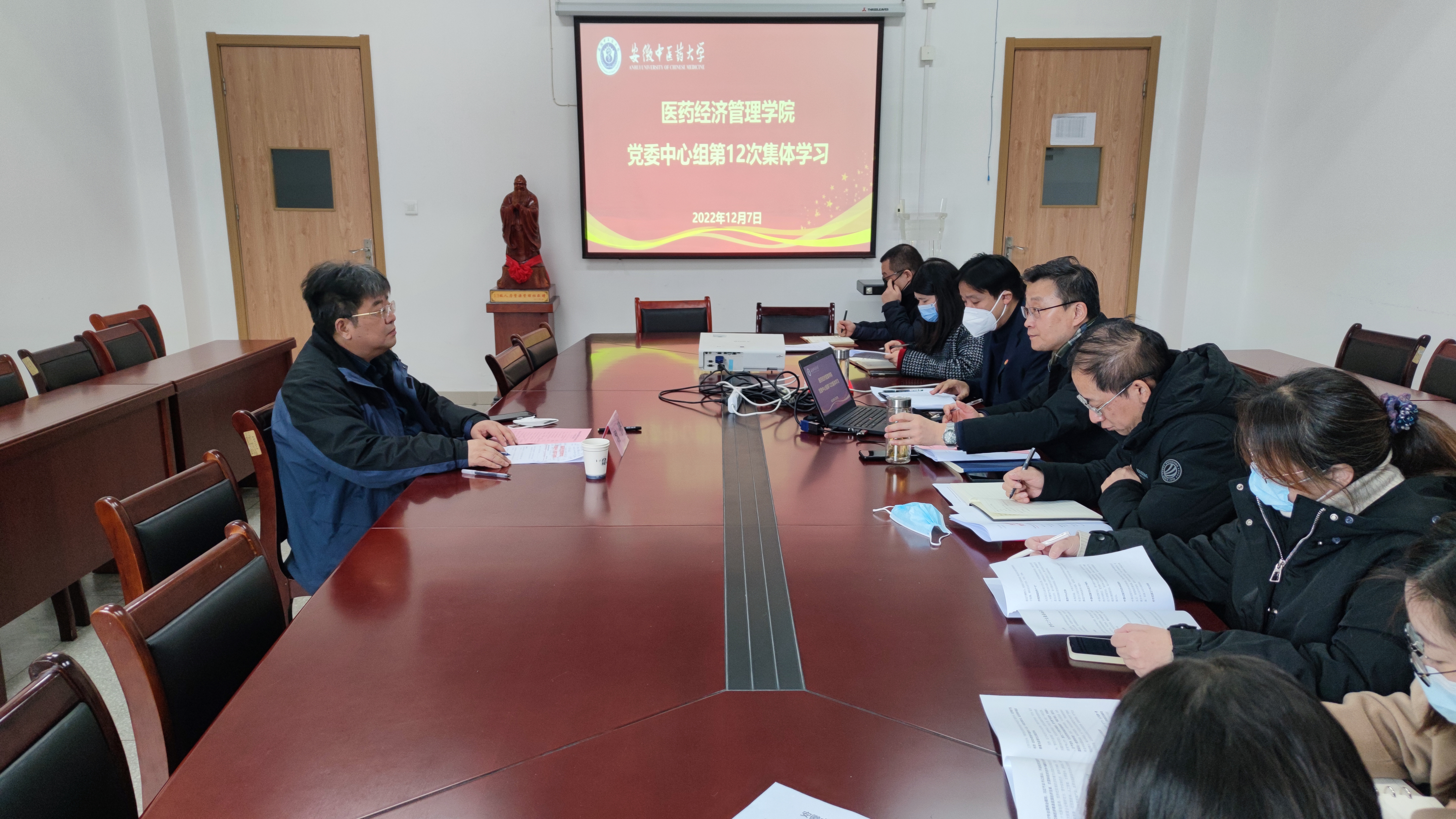 12月7日下午,学校党委常委、副校长魏骅列席指导医药经济管理学院党委理论学习中心组第十二次(扩大)学习会,本次党委中心组学习的主题是“学习宣传贯彻党的二十大精神,推动医药经济管理学院高质量发展”。会议由学院党委书记冯鑫主持,医药经济管理学院领导班子、党委委员及各支部书记参加会议。