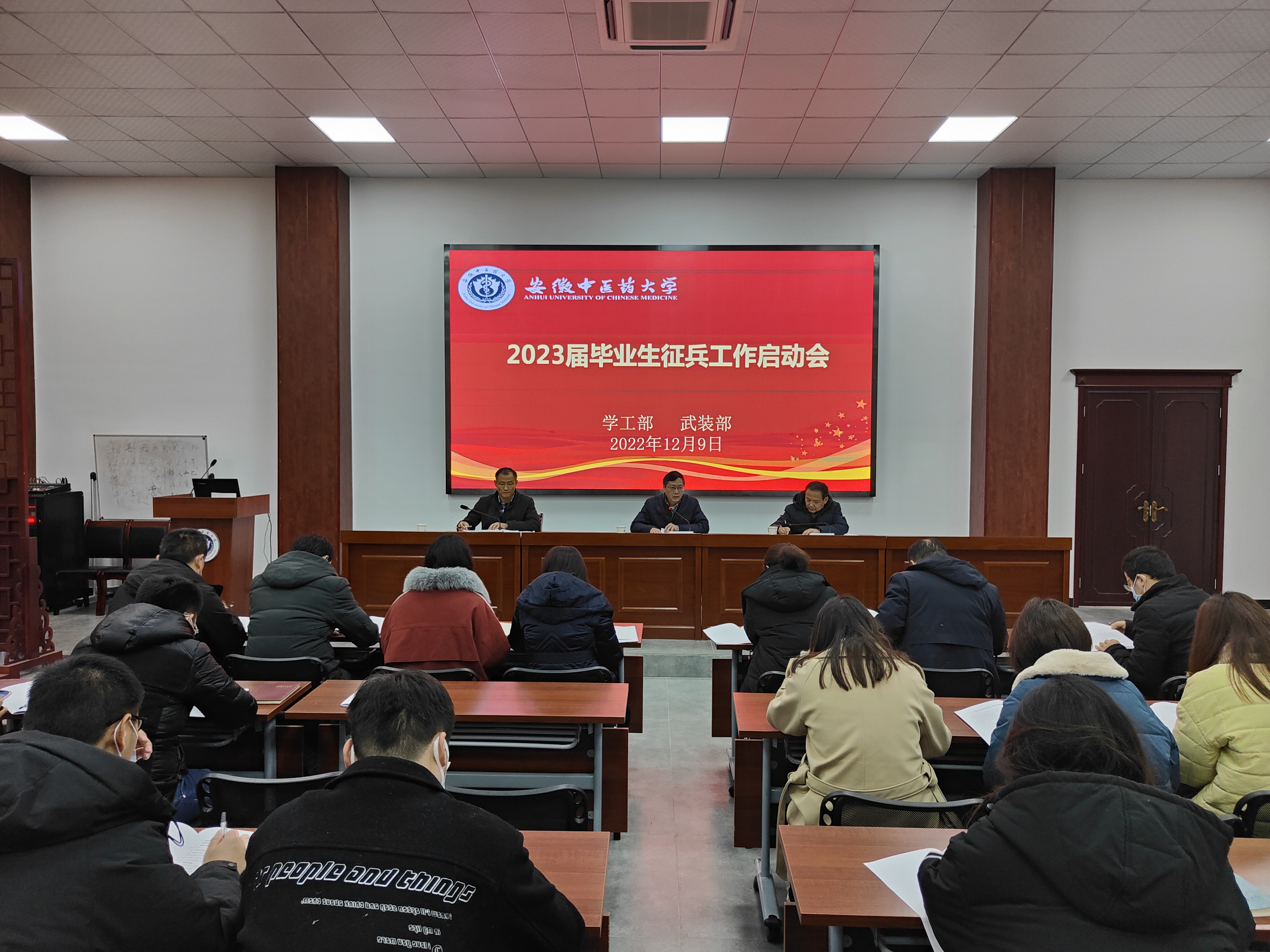 12月9日上午,学校在宅仁堂会议室召开2023年征兵工作启动大会,学校党委副书记张永群、武装部部长丁荣光等出席,学校各学院副书记、毕业班辅导员参加会议。