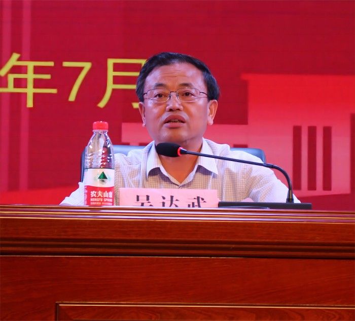 吴达武主持仪式并指出,广大师生要通过大学生暑期 “三下乡”社会实践活动,上好与现实结合的社会思政课,坚定理想信念,践行初心使命,提高思想认识,守牢安全底线,真正深入基层一线,了解省情社情,接受实践锻炼,充分展示安中学子的青春风采。