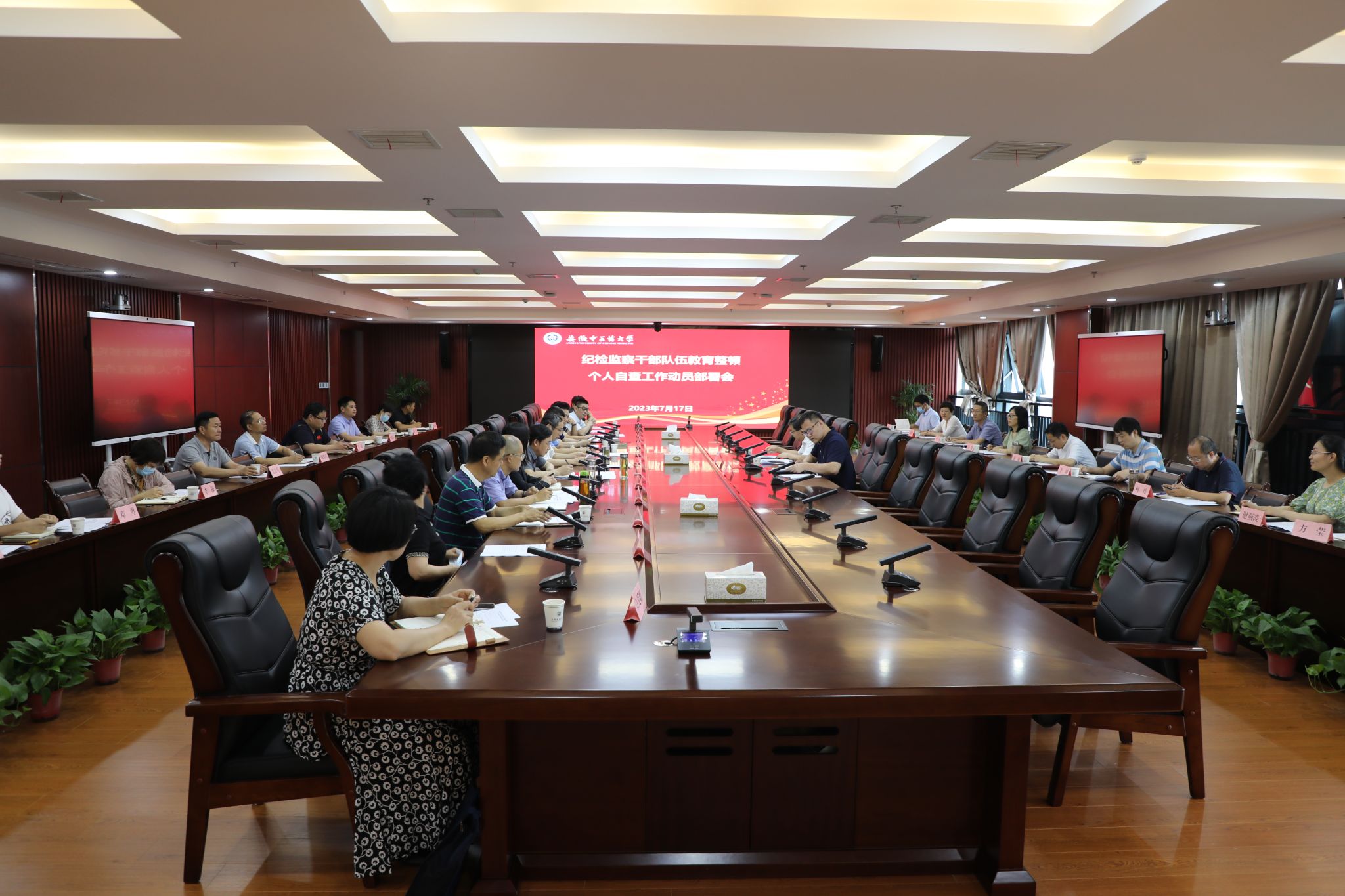 7月17日,校党委常委、纪委书记、监察专员石金明主持召开纪检监察干部队伍教育整顿个人自查工作动员部署会议,省纪委监委督导组、第八纪检监察室二级巡视员王在胜一行到会指导。学校纪委委员,二级党组织纪检委员,校纪委办、三所附院纪委全体成员参会。