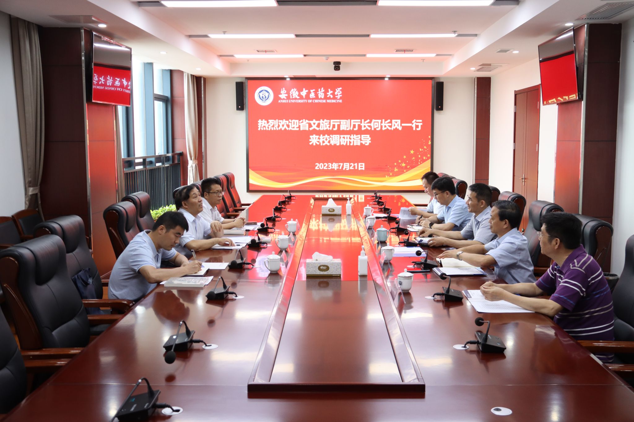王琦对何长风一行表示欢迎,对省文化和旅游厅对学校建设“安徽省中医药博物馆”的支持表示感谢。他介绍了学校筹建“安徽省中医药博物馆”的前期准备、建设推进情况。他表示,学校将在省文化和旅游厅等相关部门的支持下抓紧推动项目建设。
