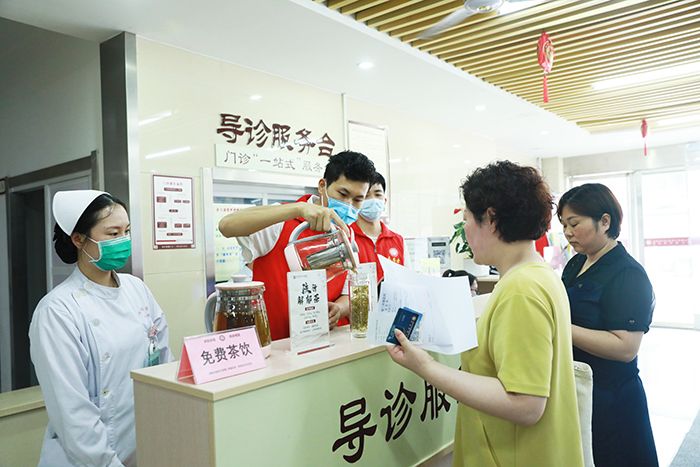 医院“一站式”服务中心为患者提供导诊、咨询、检查检验预约、便民设备租借等服务,此外,医院门诊大厅服务中心还具有平车、轮椅、充电宝、老花镜、针线盒、中药特色茶饮等常规便民物品,提供免费测量血糖、血压服务,为患者提供方便齐全的就诊环境,在门诊走廊增设空调优化服务细节,医院还经常性地组织各类义诊活动,将健康服务送到群众身边,不断提升就医体验感。