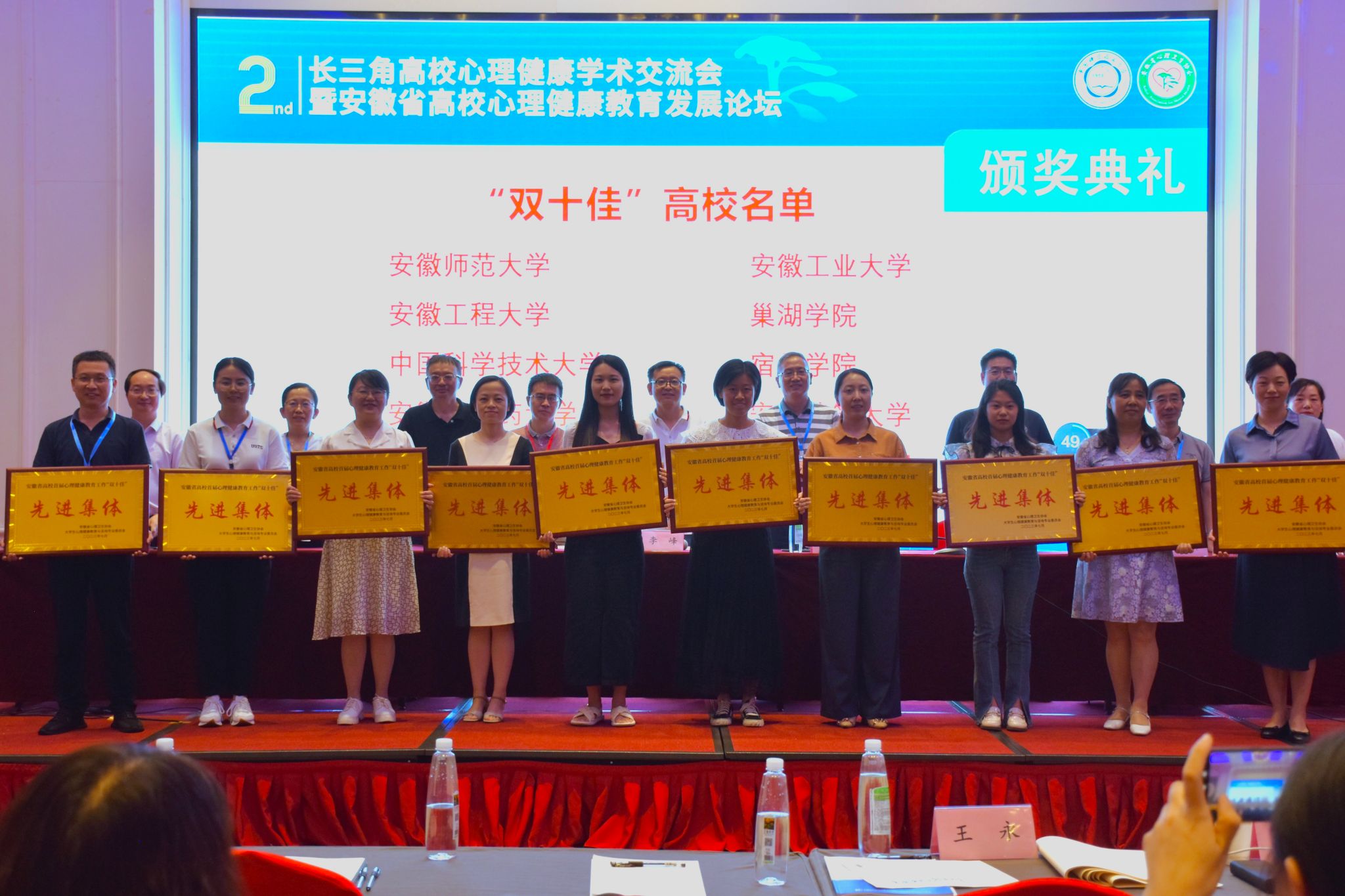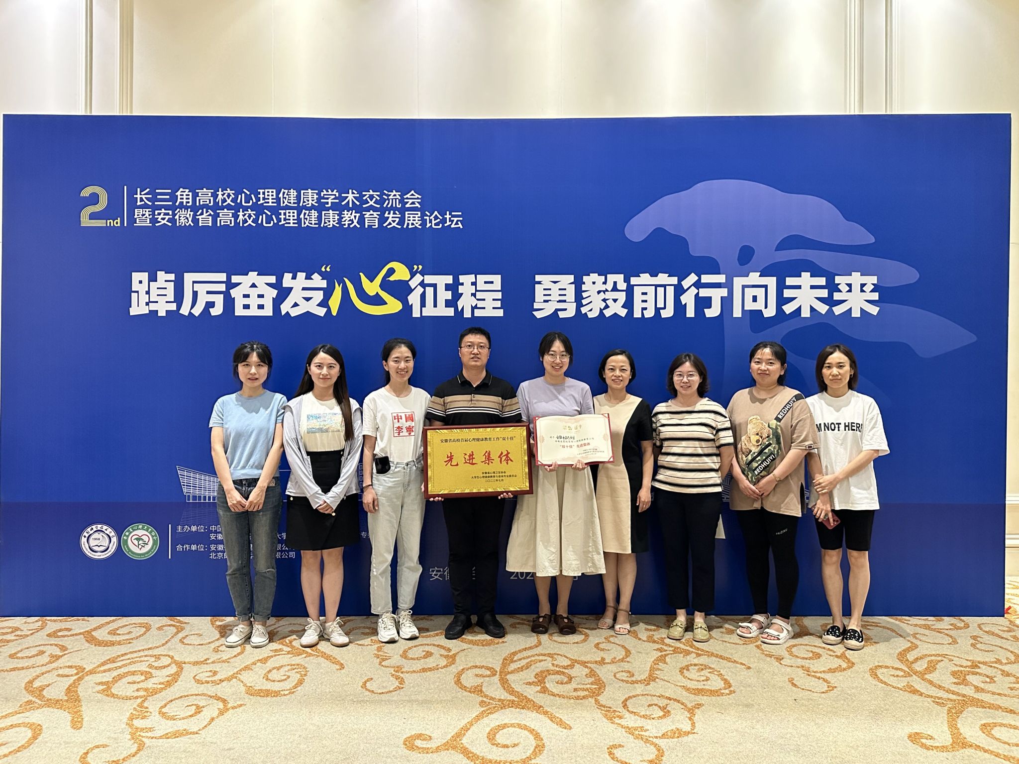 为学习贯彻习近平新时代中国特色社会主义思想主题教育,认真落实《全面加强和改进新时代学生心理健康工作专项行动计划(2023—2025年)》,7月24日至26日,由中国科学技术大学、安徽省心理卫生协会大学生心理健康教育与咨询专委会共同举办的“长三角高校心理健康学术交流会暨安徽省高校第二届心理健康教育发展论坛”在安徽合肥召开,我校人文与国际教育交流学院党总支书记金晓琴,学工部心理健康教育科教师、部分二级心理健康教育辅导站站长与辅导员参会。会议评选表彰了安徽省高校首届心理健康教育工作“双十佳”先进集体,我校喜获此项殊荣。
