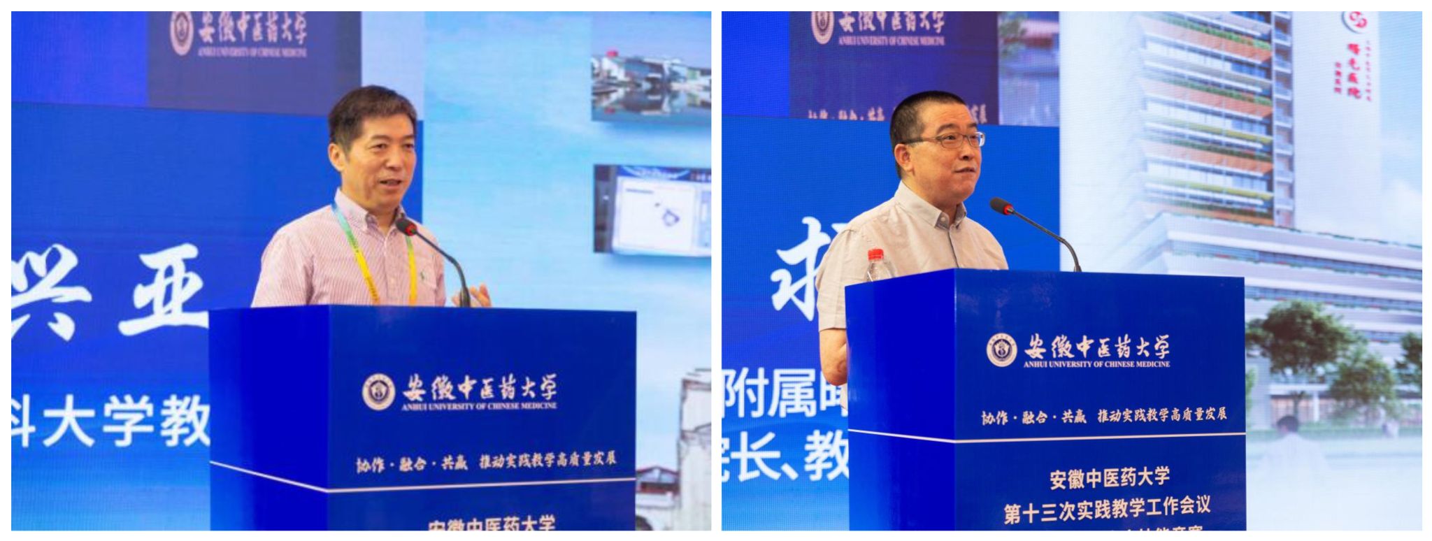 会议特别邀请了南京医科大学高兴亚教授就“医学教育”主题进行了专题讲座,特别邀请了上海中医药大学附属曙光医院安徽医院高月求教授就“医院内涵建设”主题进行了专题报告;邀请了安徽中医药大学附属滁州中西医结合医院、中国科学技术大学附属第一医院、苏州市中医医院、上海市第十人民医院、华益药业科技(安徽)有限公司、科大讯飞等6家单位,分别就实践教学基地内涵建设、教育教学工作组织实施和改革、校企融合共建现代产业学院等内容进行了交流研讨。