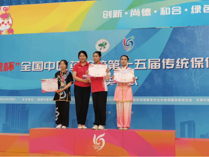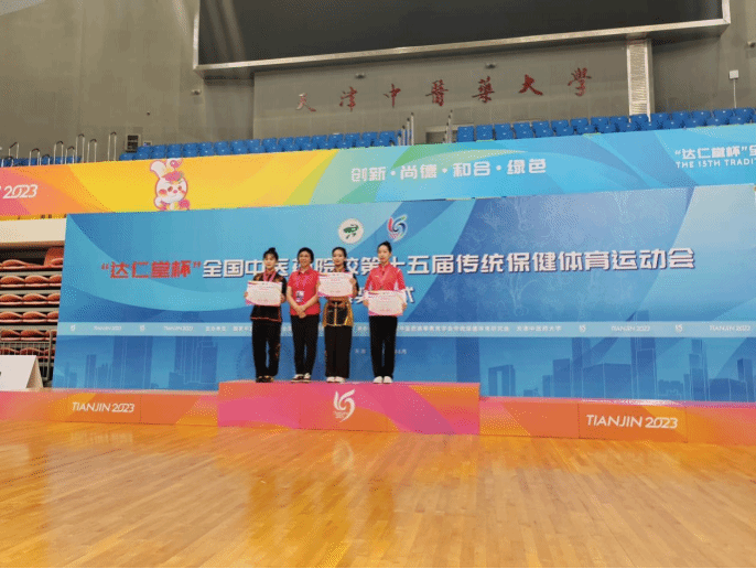 8月15日,在天津中医药大学举办的"达仁堂杯"全国中医药院校第十五届传统保健体育运动会比赛中,我校代表队首日参加6个项目比赛,荣获2金1银1铜,1个第七名,1个第八名的优异成绩,每个项目均获佳绩。