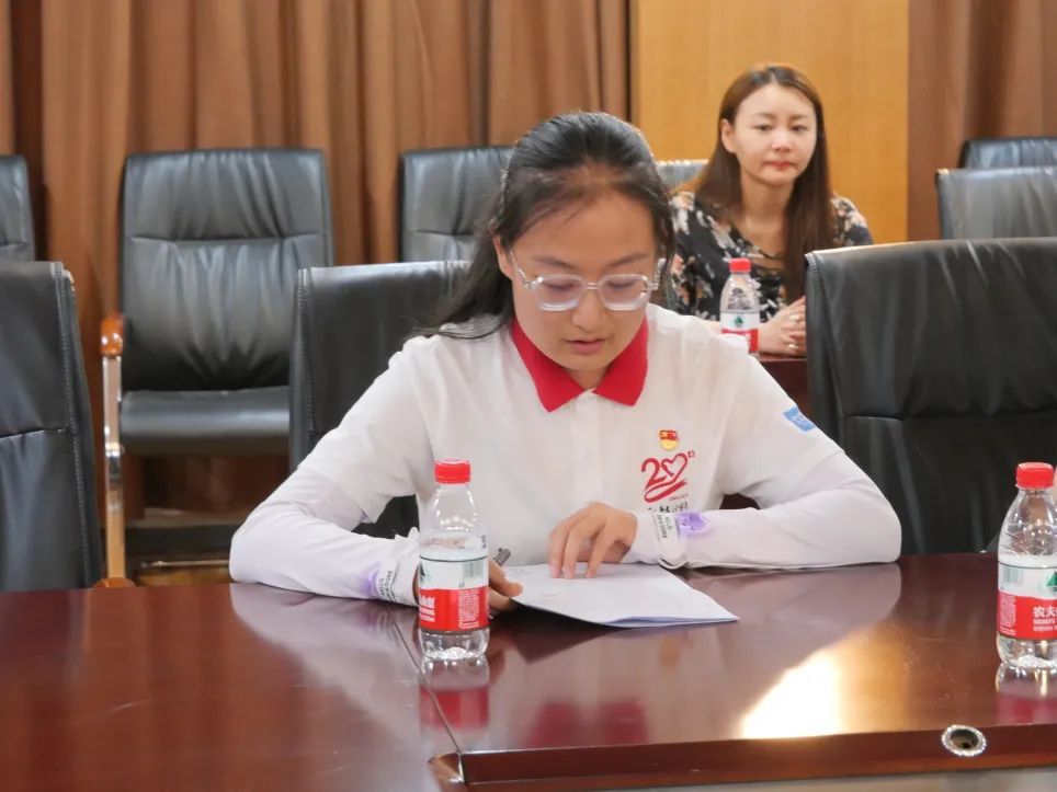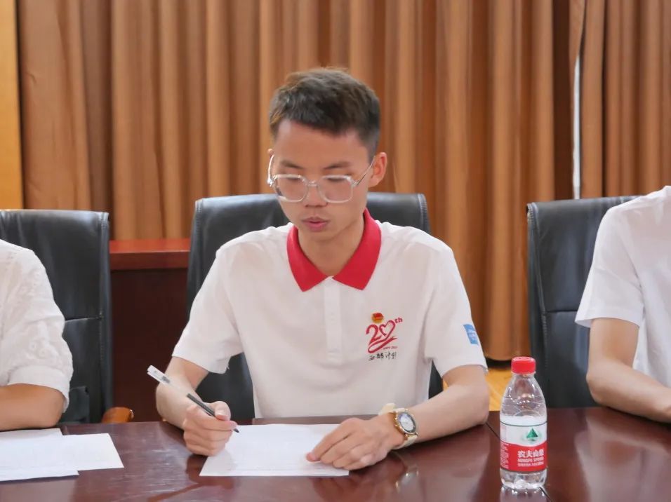 分享交流环节,由西部计划志愿者代表许鑫进行发言,他以挺拔于戈壁荒漠的胡杨树为引,结合两年的志愿服务经历,分享了他对西部计划志愿者这一身份的感悟。随后,其余志愿者进行了志愿服务经历和感悟交流。
