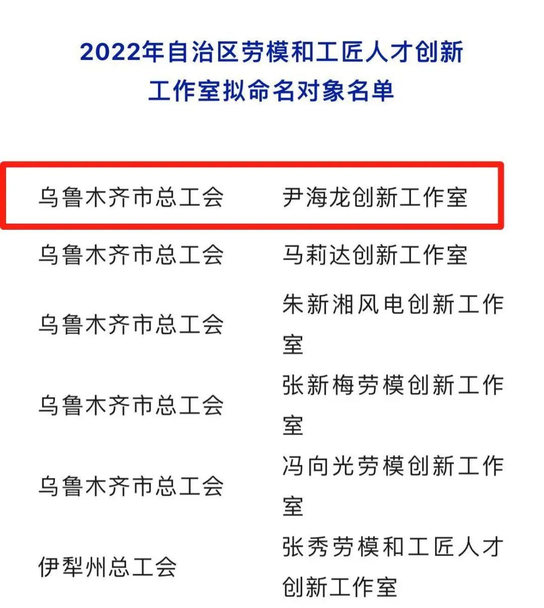 尹海龙同志作为新疆维药副总经理、总工程师、自治区天池英才、自治区天山创新团队带头人、尹海龙药剂研制创新技能大师工作室领衔人,创新工作室团队成员近130人,其中包括药学博士研究生、硕士研究生和中高级工程师等,通过搭建科研平台,在新药研发、上市产品二次开发、知识产权保护等方面快速推动了新疆民族药研发进程和产业化步伐。工作室经过多年发展,通过“传帮带”放大劳模品牌效应,已为公司培养出多名技能人才和管理能手,造就了一支专业技术硬、创新能力强、业务素质高的科研队伍,为新疆民族药事业发展注入强劲动力。