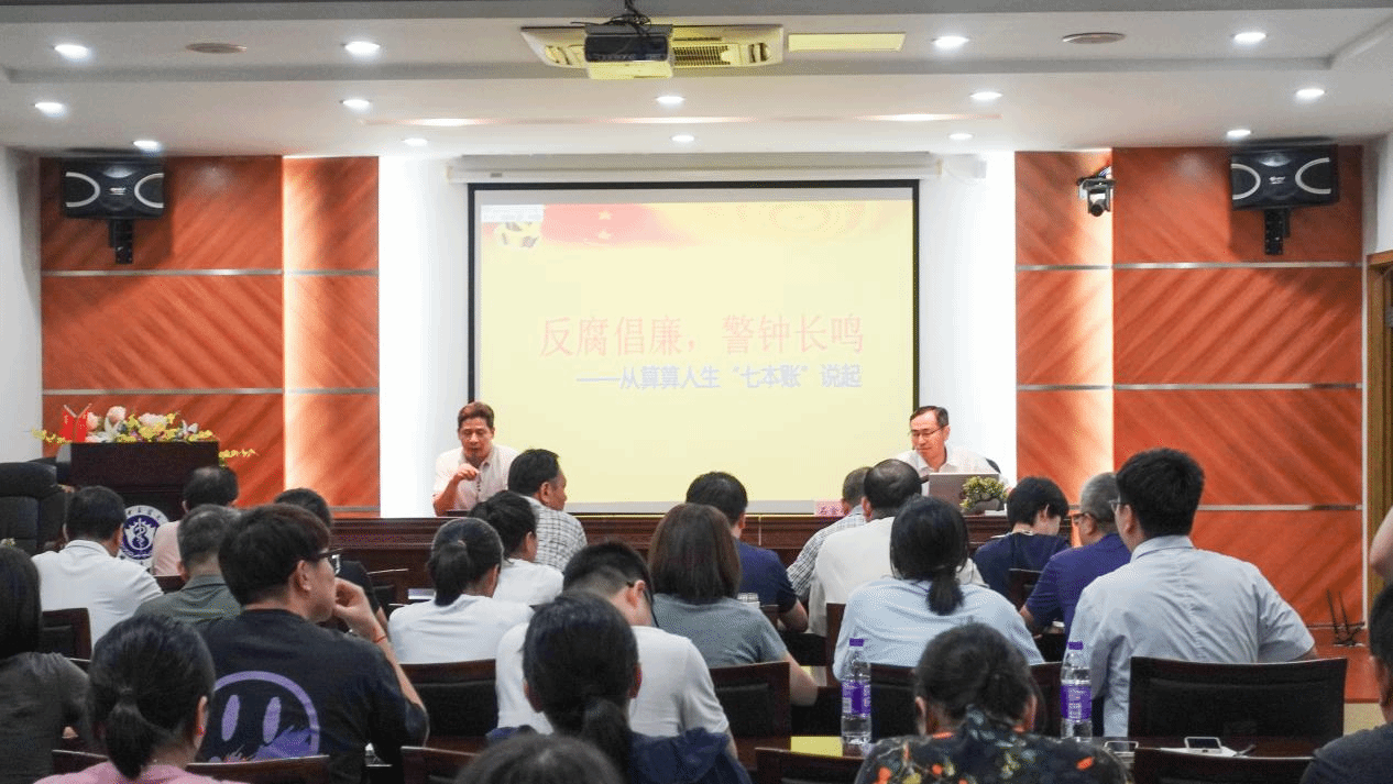 会上,石金明以“人生七本账”为引,从腐败的概述、新时代反腐倡廉成效与部署、党员干部拒腐防变练好“三功”等三个方面,详细的向大家阐述了腐败的类型、原因、危害以及党员干部应该如何防腐拒变,并结合近年来身边发生的典型案件作为“活教材”,以“身边案”教育“身边人”。他指出,党的十八大以来,以习近平同志为核心的党中央从制定实施中央八项规定开局破题,以雷霆万钧之势推进反腐败斗争,激荡清风正气、凝聚党心民心,为党和国家各项事业发展提供了坚强保障。我们要深刻认识全面打赢反腐败斗争攻坚战、持久战的重大意义,深刻认识新形势下党风廉政建设和反腐败斗争的艰巨性、紧迫性,坚持一体推进不敢腐、不能腐、不想腐,标本兼治深化反腐败斗争,算好人生的“七本帐”,把好廉洁从业关。