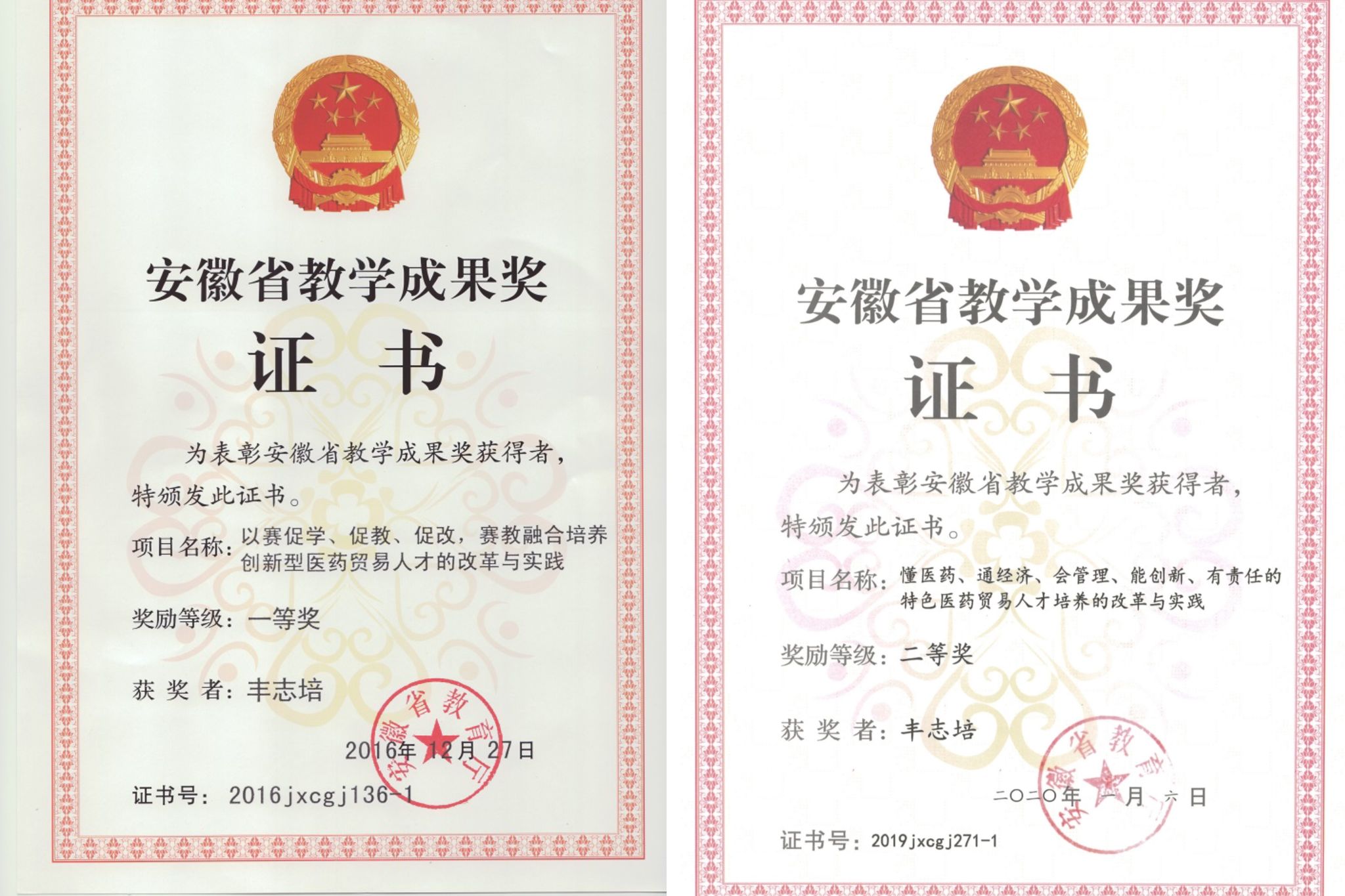 省级教学成果一等奖、二等奖